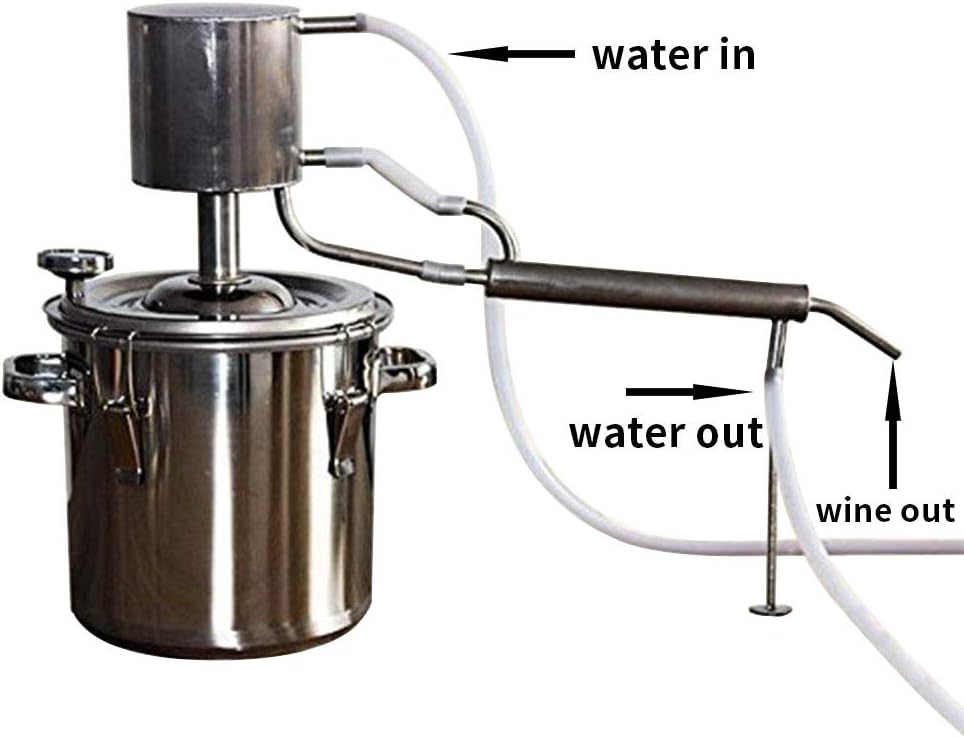 Heat source: induction cooler, stove, or any other heating sources are ok. Material: stainless steel; Capacity: 12L; 22L Package Lists : Water pump,Measuring cylinder,Silicone tube,Seal,The amount of spoon,Filter bag,Thermometer,Steamer,Instructions. Feature: 1 year warranty and exchange parts for free. Made of high quality stainless steel, rust resistant, durable and easy to clean. Compatible with household small wine making equipment, convenient to use. Help wine making process faster in low temperature and taste better . Safe and reliable performances, no side effect. Great for home brewery vodka whisky wine making.