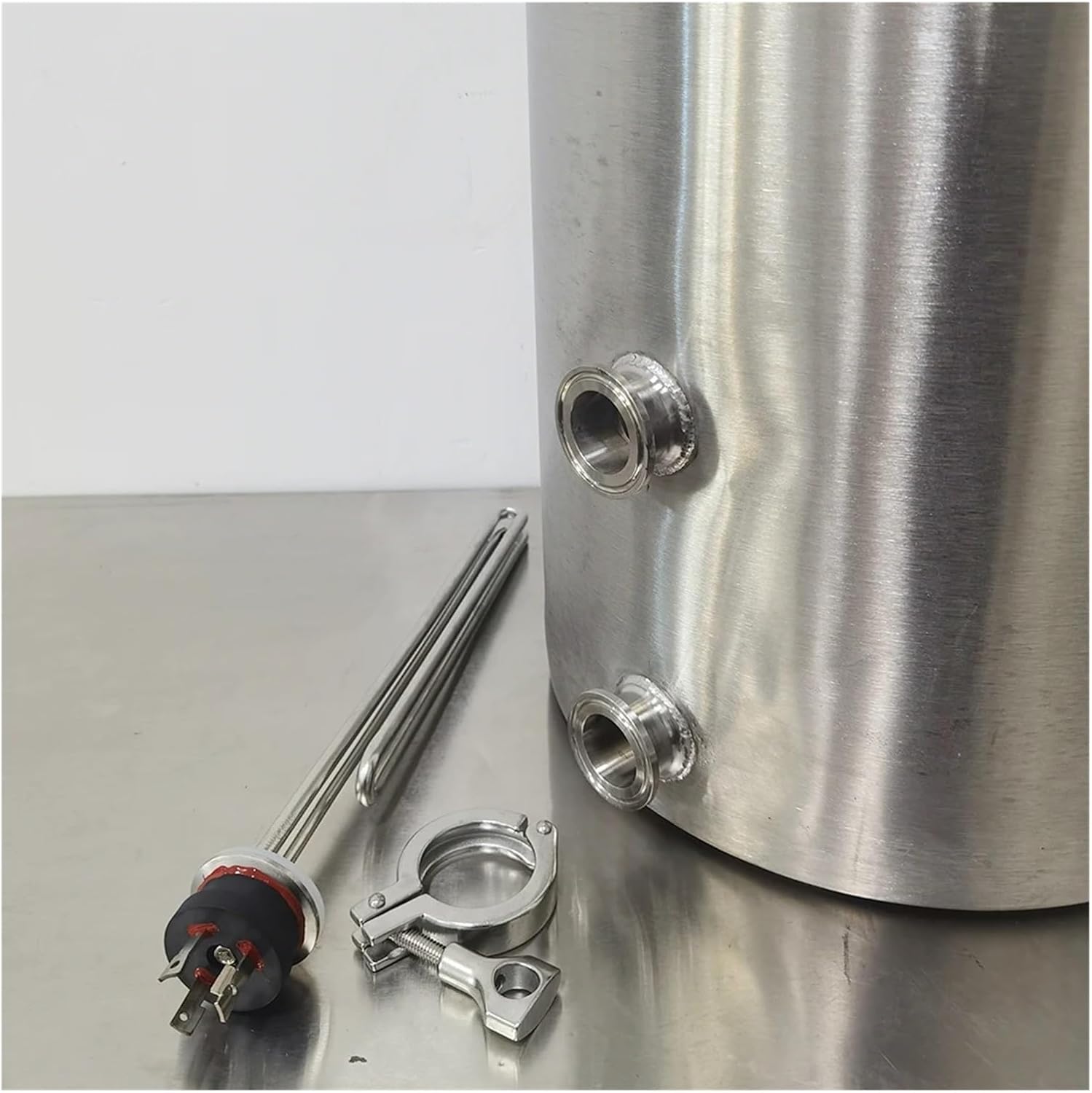 ULWD Foldback/Ripple Heating Element integrated 1.5"Tri ClampThe element is constructed of shiny 304 stainless steel and will look like new for years.It features an integrated 1.5" Tri-Clamp ferrule as well as an integrated L6-30P twist lock plug! No longer do you have to figure out how to enclose your heater element to make it safe. Any L6-30R twist lock receptacle will connect to this element for a perfect fit.It is an ULWD (Ultra Low Watt Density) element, so no worries about scorching your wort.This heater requires a 1.5" Tri-Clamp flange on your kettle. If you are converting to electric, you can add a Tri-Clamp flange by having one welded on locally or by using ourWeldless 1.5 Inch Tri-Clamp Bulkhead Adapter.The gasket and tri clamp are not included.To calculate how long heating water will take, use this formula:Volume in liters*4200 / power of element in watts = seconds per degree celsiusNotes: These elements must be submerged in liquid any time power is applied.A Nema L6-30R UL 30 Amp 250 Volt Female Twist Lock 3 Wire Power Cord PlugThis is the appropriate receptacle to put on the end of a cable for use with the TC-Integrated heating elements. You can use this end along with the Nema L6-30P plug to create your own extension cords.B Foldback Heating Element - 120v 1650wC Foldback Heating Element - 240v 2500wD Foldback Heating Element - 240v 3500wE Foldback Heating Element - 240v 5500wF Ripple Heating Element - 240v 5500wThe element itself is 13.75inches long and the ferrule is a 1.5" Tri-Clamp. Product Type : Brew Pots & KettlesMaterial : Stainless Steel**Purchase Notes***Because it is manual measurement, please allow 1-3% error and make sure not to mind ordering.*Product photos are taken in kind, because the light is different from the display, so the color may be different. The product will be subject to the actual produc