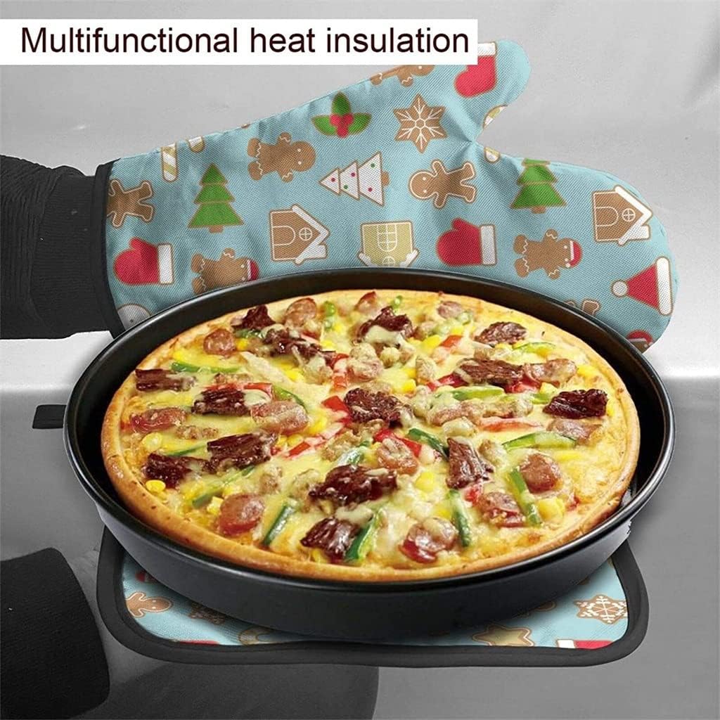 Features:Heat-Resistant, Wear-Resistant Oven GlovesThick Cotton Lining And Extremely High Heat Resistance, Can Safely Help You Work In The Kitchen. And Designed With An Updated Appearance And Powerful Functions. Each Oven Mitt Features A Cotton Loop Inside So They Can Be Hung In A Cabinet, Near The Grill Or In A Pantry.Allow Hand Washing,Don'T Machine Washing, Just Wash It With Warm Soapy Water And Dry It, Do Not Bleach.Material: Waterproof Polyester FabricSize: Approx 7.5 X 11 Inch Inch (Gloves) + 8 X 8 Inch (Pot Holder)Package includes:1 Oven Mitts 1 Potholders.Note:The size of the manual measurement may have some error, it is within the range of ±1 cm, the actual size shall be subject to the actual object.Due to different lighting and shooting conditions, the color of the image may differ from the actual product. Please refer to the actual product.Perfect for oven, pot, trivet, grill, casserole, hot cookware, unscrewing a hot light bulb, BBQ, camping and so on. Also the oven mitts are ideal kitchen gift for baker, cooker.