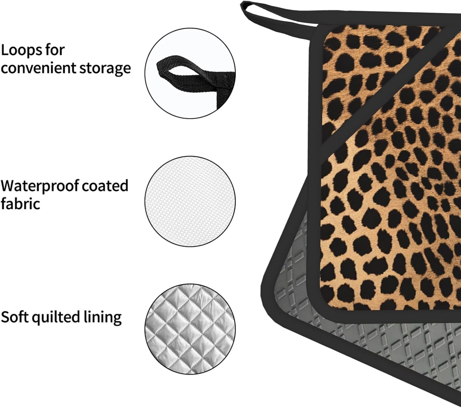 Upgrade your kitchen essentials with this oven mitts and pot holders set, designed for safe and comfortable handling of hot cookware. The set includes 2 heat-resistant oven mitts and 2 pot holders with pockets, making it a practical choice for daily cooking, baking, grilling, and microwave use.Crafted from high-quality polyester with thick insulated padding, these kitchen gloves deliver reliable heat protection up to 260°C. The soft quilted lining ensures comfort and flexibility, while the silicone palm design enhances grip and control when handling hot pots, pans, and trays.The non-slip silicone surface provides added stability, giving you confidence when moving hot cookware. Waterproof inner and outer layers make cleaning simple—just wipe clean or hand wash and air dry for easy care.Each piece features a convenient hanging loop for organized storage and quick access in your kitchen. Stylish and functional, this oven mitts set also makes a thoughtful gift for family and friends on holidays, housewarmings, and special occasions.