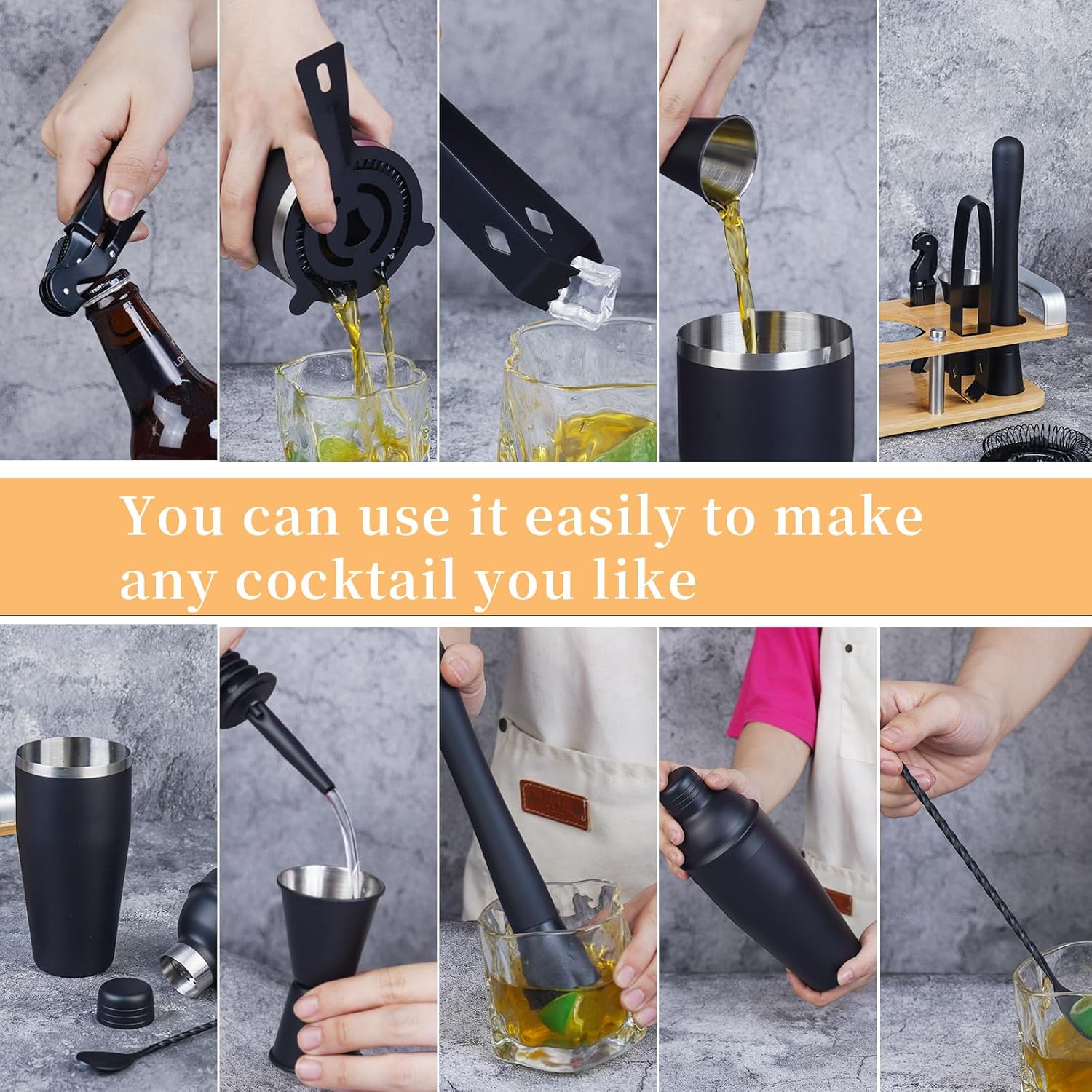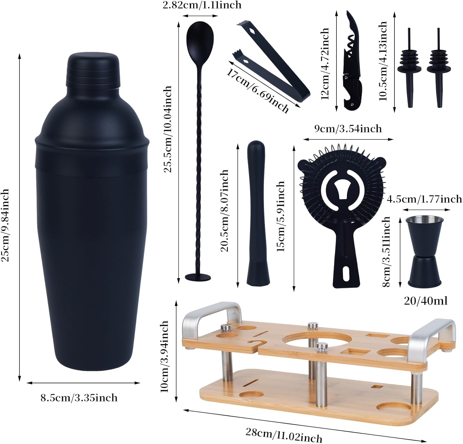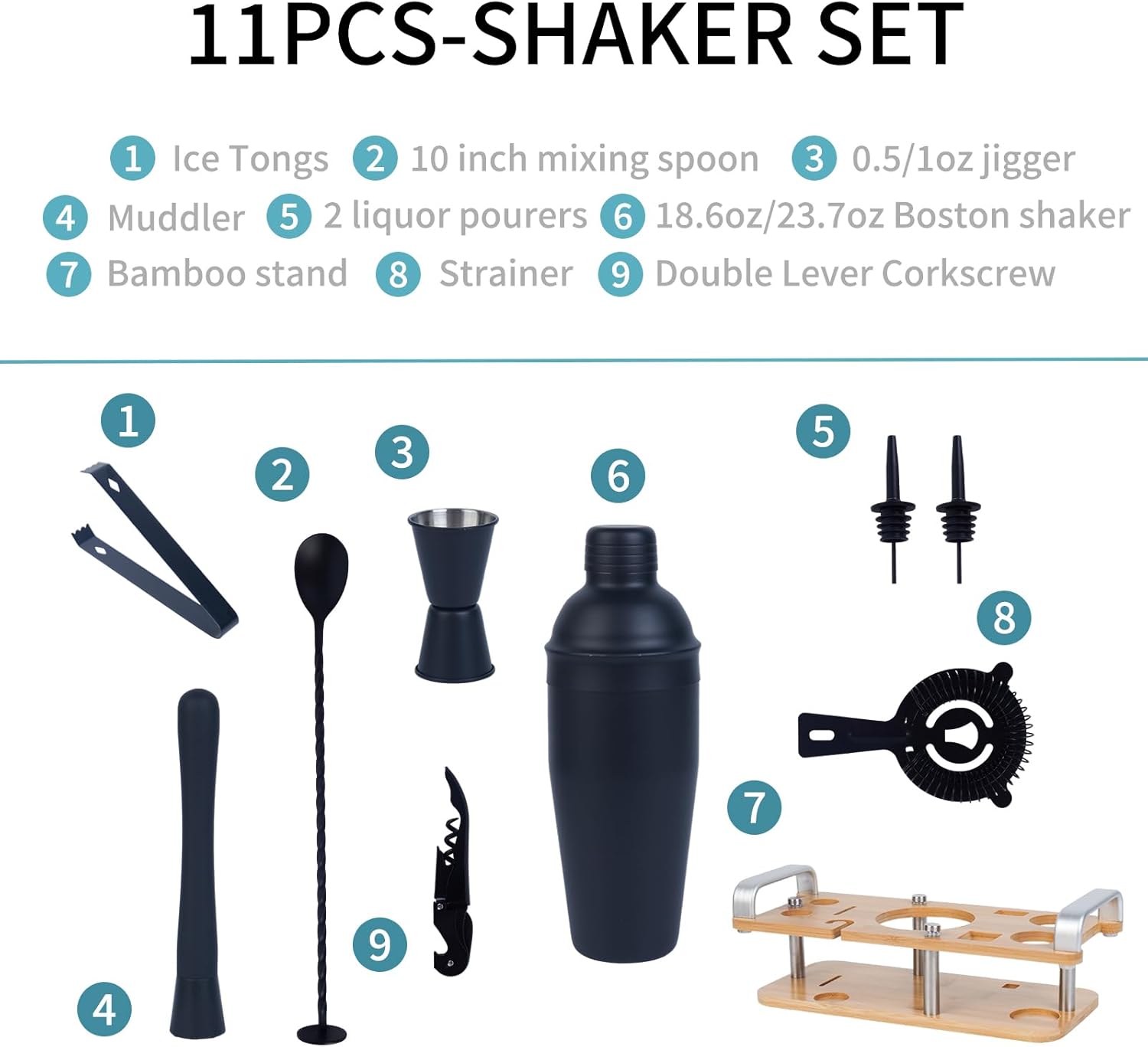 | Included Components | Jigger, Pourer, Shaker, Strainer |