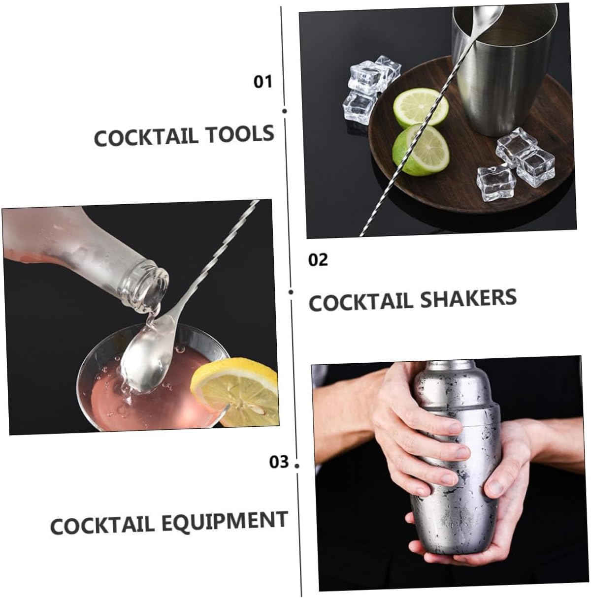 Package Include 1 x Set of 13Pcs Cocktail Shaker Tools Characteristics - Material: Stainless steel, Bartender Kit. - Color: Silver Stainless Steel Cocktail Tools. - Shaker Strainer Size: . 17.80X8.00X2.00cm/7.00X3.14X0.79in Household Cocktail Tools. - It fits comfortably in your hand and is easy to hold and features a balance between light and weight. Cocktail Making Tools - This cocktail tool set is a set that is a favorite of expert bartenders Home Cocktail Tools. - Comes with a rack for the storage of these cocktail tools Bar Cocktail Tools. - It can be used in multiple functions, which can bring much convenience to you Cocktail Strainer. - This is a professional introductory cocktail shaker set that can be used for yourself, or as a those who love Birthday .Goods InformationHome Cocktail Tools and fine polished, and scratch .Birthday Whether you're a beginner interested in cocktails or a professional cocktail mixologist, this cocktail tools set is the choice for you.Cocktail Strainer It is easy to clean by hand, and it will stay clean after use without any stains