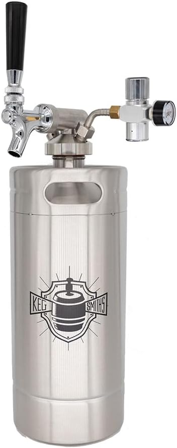 Stop settling for lackluster cans and inconsistent bottles. Whether you’re a homebrew enthusiast or a craft beer lover, the Keg Smiths 128 oz Portable Draft Keg System delivers the brewery-fresh experience right to your countertop, tailgate, or campsite. Engineered with food-grade stainless steel and a professional CO2/Nitrogen regulation system, it ensures every pour is crisp, cold, and carbonated exactly to your liking. Key Features Massive 128 oz. Capacity: Holds a full gallon (8 pints) of your favorite beverage—perfect for personal use or sharing at small gatherings. Pro-Grade Tap System: Features a fully removable stainless steel tap handle, making it easy to store, transport, and clean. Dual-Gas Compatibility: Use CO2 for classic carbonation or switch to Keg Smith’s Nitrogen Threaded cartridges for a velvety, stout-style pour. Precision Pressure Control: Maintain the "Perfect Pour" at 5 PSI or adjust the regulator to customize carbonation levels for different beer styles. Indestructible Build: Crafted from high-quality 304 stainless steel to preserve flavor, maintain temperature, and withstand the rigors of travel. Why Choose Keg Smith’s? Portability: Lightweight and compact; fits easily in most home fridges or standard coolers. Versatility: Not just for beer! Fill it with cold brew coffee, cocktails, mimosas, or iced tea. Easy Maintenance: Quick-disassembly design allows for deep cleaning in minutes. Taste Preservation: Eliminates oxygen exposure, keeping your draft fresh for weeks.