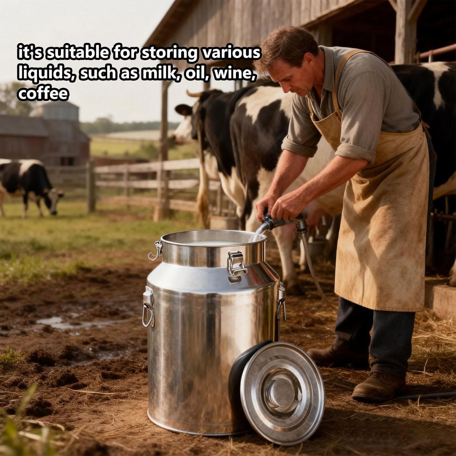 Our milk can is made of 304 stainless steel material, which is sturdy and durable. This wine pail bucket good sealing can store various kinds of liquids and solids, and it won't leak even if it is inverted, so you can transport it with more peace of mind. What's more, milk jug enables easier sterilization prior to brewing.Specification:Capacity: 28L 30x40CM,35L 30x50CM,42L 30x60CM,48L 35x50CM,58L 35x60CM,64L 40x50CM,Note: Please allow 1-2cm error for manual measurement. The measurement mark are measured based on water. Different items may have different capacities due to different densities.Please don't mind.Effortless Cleaning: Thanks to the smooth surface and simple structure, you can easily remove the dirt on it with a soft cloth and water.Package Content:1 x Milk can