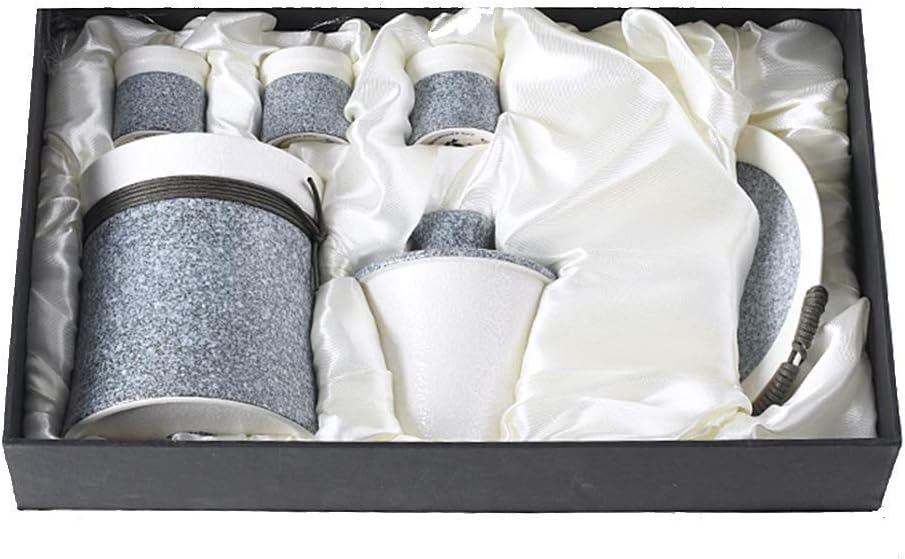 Tea Pots 6 Pieces Japanese Sake Set Wine Glasses Set with Warmer Pot and Cup Saucer Matte Texture Sake Serving Set for Cold/Warm/Hot Sake/Shochu/Tea