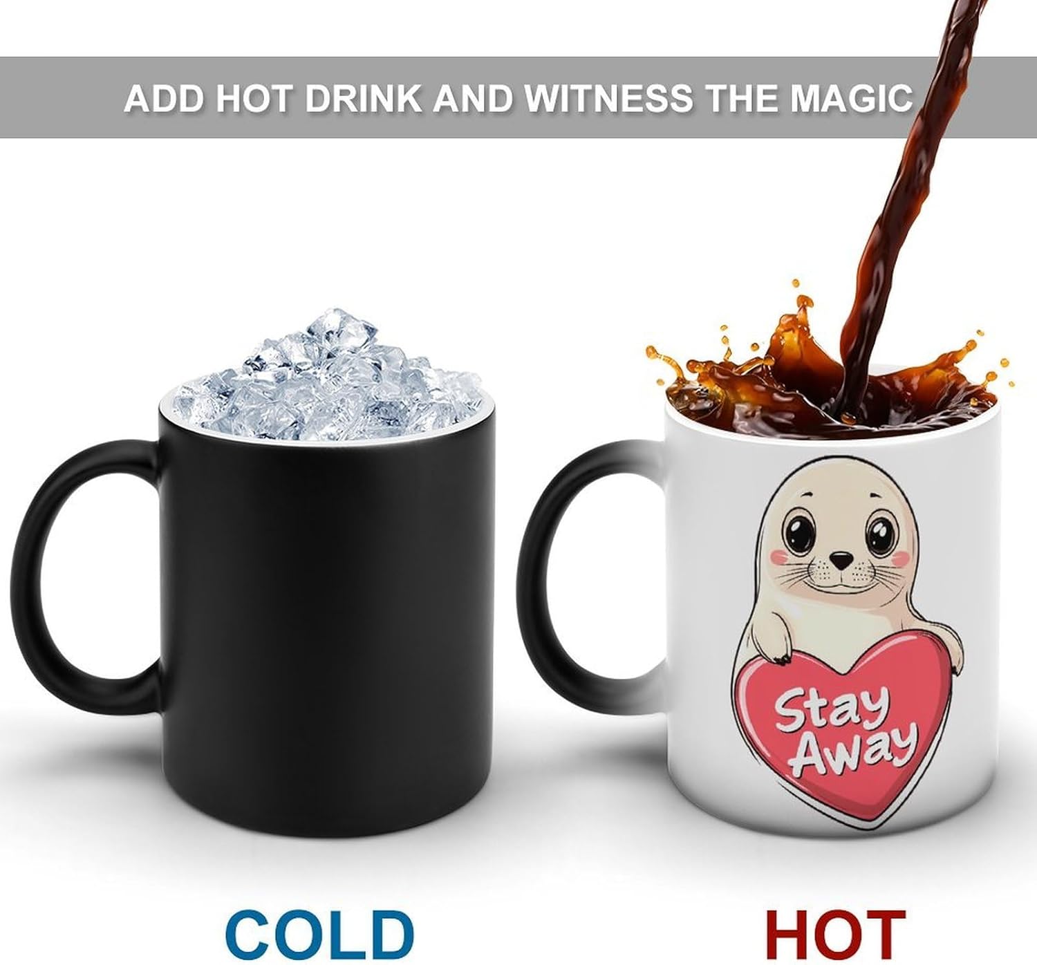Stay Away Seal Color Changing Mug Heated Ceramic Cup Heat Sensitive Coffee Mug Fun Gift