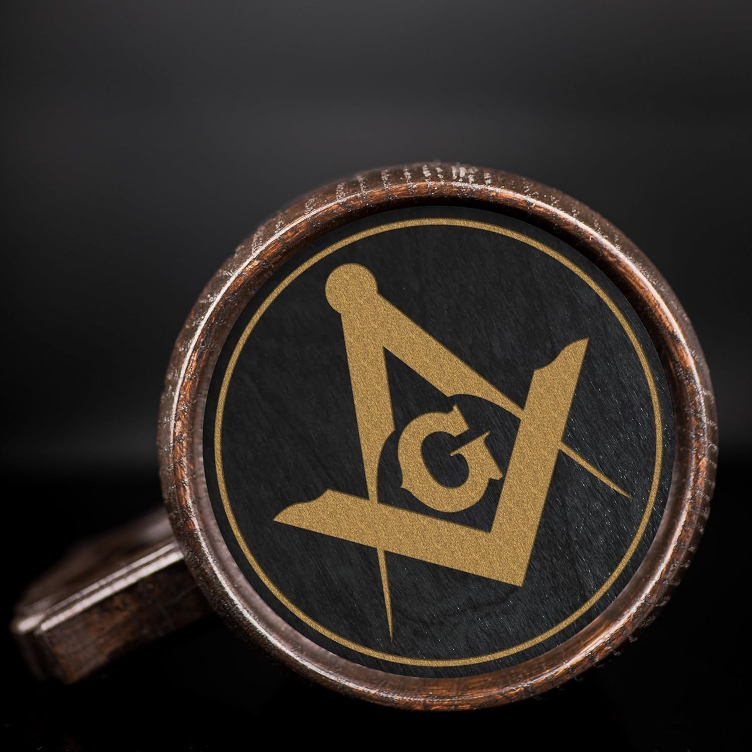 Freemason Square and Compass Beer Mug, Personalized Stein, Wooden Tankard