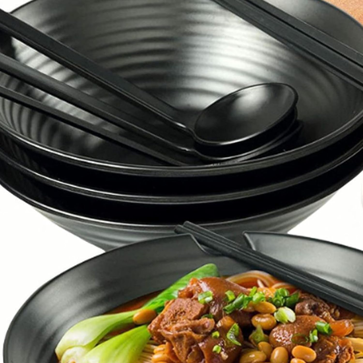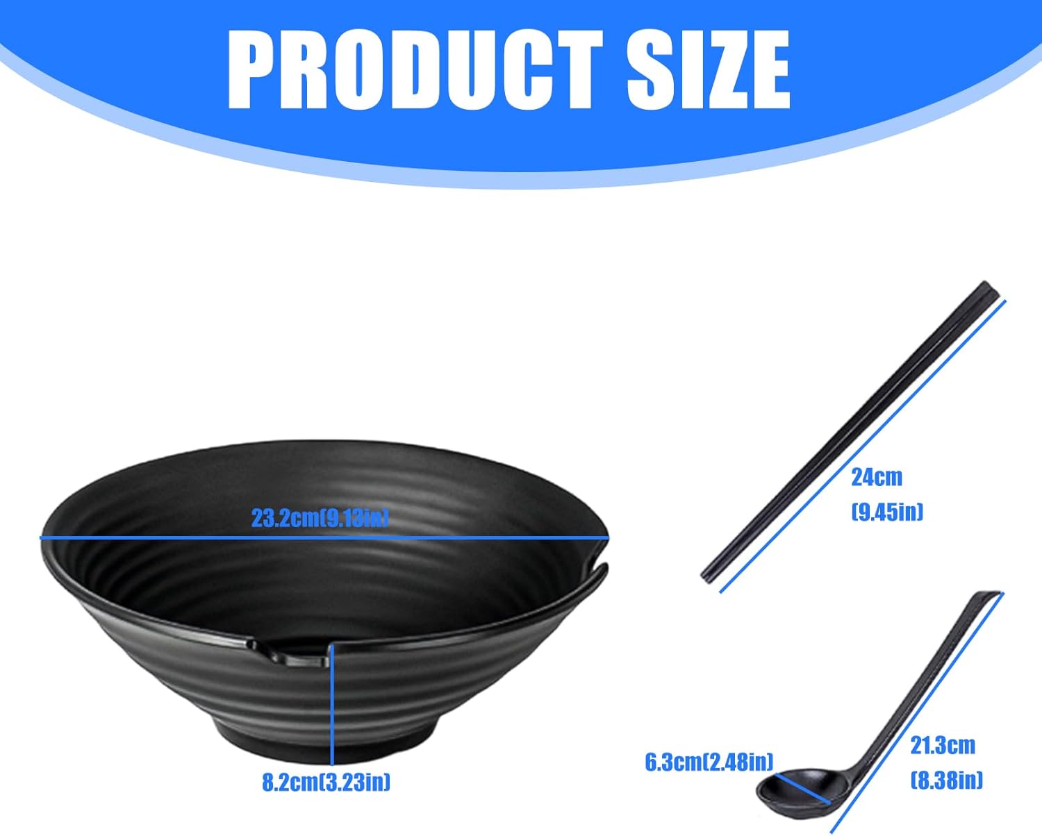 2Set Japanese Ramen Bowl Spoon Chopsticks Set ABS Noodles Bowl for Family Dining and Outdoor PicnicsFeatures:Featuring traditional Japanese hat shaped aesthetics and safe ABS, this bowl, spoon, and chopsticks set a unique oriental while being shatterproof and safe for food perfect for enhancing your kitchenware collection.Designed for light weight portability and easy storage, the smooth surfaces ensures quick without residues, making it a wear and practical tableware for everyday use in any tableware setup.Ideal for families with busy professional, and minimalists enthusiasts, this versatile ABS tableware set caters to users seeking both styles and functionality in their dining essential.Suitable for various occasions such as daily meals at home, outdoor picnics, or festive gatherings, it elevates any dining with its artistic design and practical kitchen utensils utility.Combining elegance with multifunctional use, this Japanese styles hat bowl set serves as an excellent weddings, housewarmings, or personals indulgence, adding a touch of sophistication to your dinnerware .Specifications:Component: ABSBowl Size:Approx.232mm/9.13''x82mm/3.23''Spoon Size:Approx.213mm/8.38''x63mm/2.48''Chopsticks Length:Approx.240mm/9.45''Package Includes:2Pcs Ramen Bowl2Pcs Spoon2Pair ChopsticksNote:Please allow 1mm errors due to manual measurement. Due to the differences between different monitors, the picture may not reflect the actual color of the item.