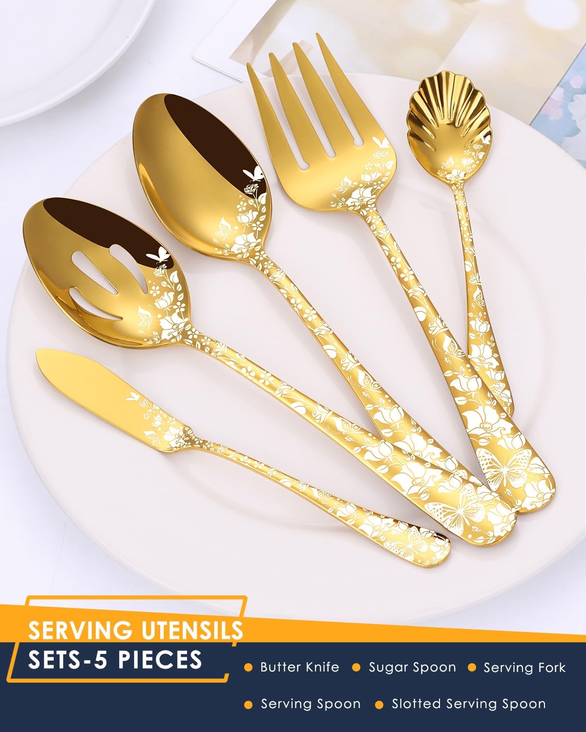 | Included Components | 12 dinner forks, 12 salad forks, 12 dinner knives, 12 dinner spoons, 12 teaspoons, 12 steak knives, 5 serving utensils, hostess set |