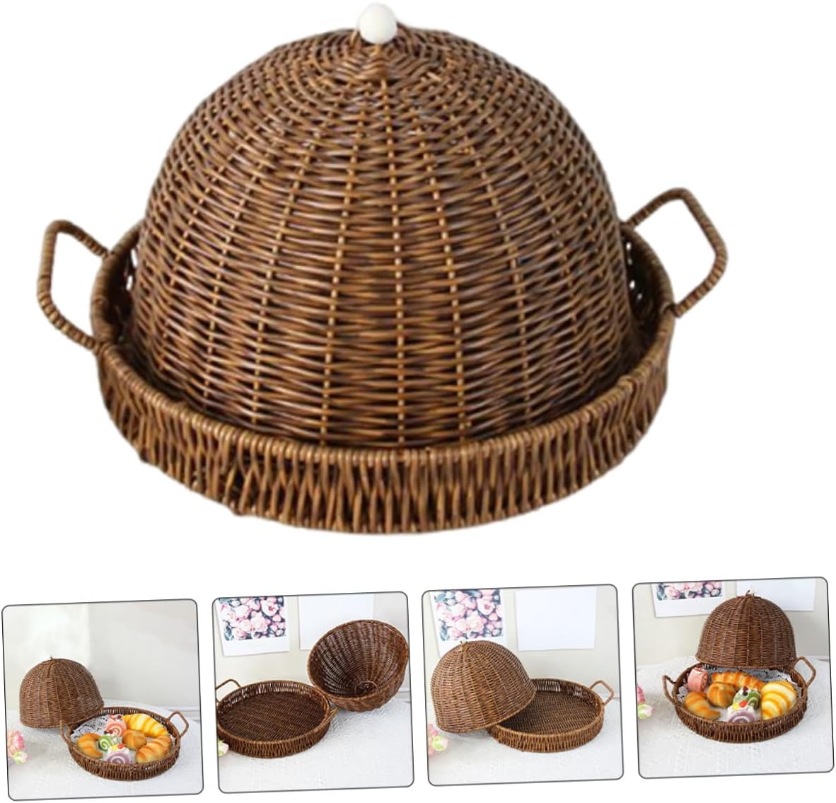 Package List 1pc x rattan snack basket Features -Color:Coffee snack holder -Freshness preservation: the lidded structure your food stays fresh , ideal for various settings handwoven candy storage basket. -Product Info:Rattan Snack Basket -Natural charm: the imitation rattan design adds a natural charm to your home, creating a warm and inviting atmosphere eating trays for living room. -Versatile and practical: this basket can be used for snacks, fruits, or cakes, offering practical for your storage needs bread serving tray. -Ideal for any occasion: its elegant design and functionality make it a present for any occasion, enhancing the recipient's home decor snack basket. -Size:35.00X35.00X20.00cm/13.76X13.76X7.86in decorative serving tray -Material:Iron,imitation rattan pp rubber hose dried fruit organizer - durability: expertly handwoven, this basket is both and stylish, for everyday use food tray.Goods Informationmultifunctional hand basket for entertaining guests or simply adding a touch of elegance to your daily routine, this basket is a versatile and stylish choice.fruit basket kitchen This multifunctional handwoven basket is ideal for serving a variety of foods, from bread and pastries to dried fruits and nuts.kitchen tray Its imitation rattan material gives it a sophisticated look, while the lid keeps contents secure and fresh