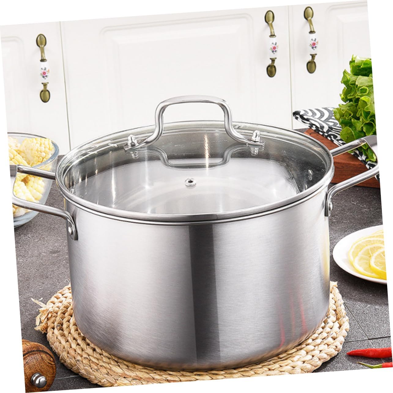 Package Include 1 x Steamed Soup Pot Features - Size: About 25.2 x 21.3 x21.5cm/9.92x8.39x8.46 inches Cookware Pot. - Color: Silver Stainless Steel . - Material: Stainless steel. - It has a tempered glass cover, the riveted handle can provide extra strength, and a packaged base that can dissipate heat evenly Soup Steamed Pot. - Food grade grade stainless steel substrate, healthy and , easy to clean without odor Multi-Function Steamed Pot. - for families, it can help you save on costs and produce delicious, nutritious meals in minutes Steamed Soup Pot. - The surface of the pot body is polished by the brush surface, which is not easy to scratch, and has no leaking and curved design, so that the soup does not leak Cooking . - Energy saving and time saving, suitable for multiple heat sources.Goods DescriptionSoup Steamed Pot Steam fast cycle food cooked faster, metal connection handle, strong and , heat insulation and anti-scalding, comfortable grip and pot lid, diversion design does not accumulate water, does not affect food taste.Multi-Function Steamed Pot The is a product for your home