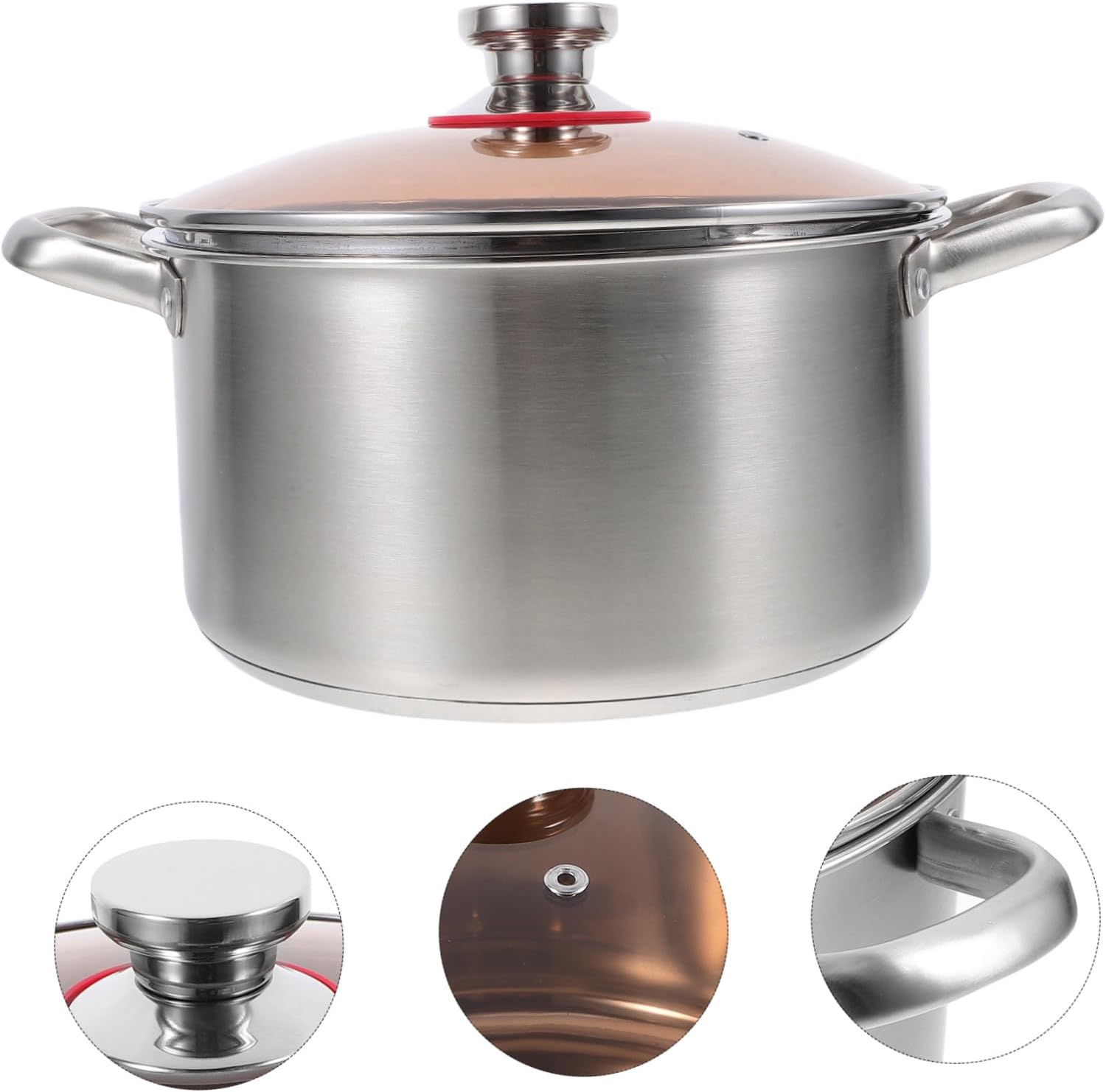 Package List 1 x Soup pot Features -Multifunctional use: this pot is Ideal for a variety of cooking tasks, from making soups and stews to boiling noodles, offering great versatility stainless steel pot with lid. -Color:Silver large stock pot -Size:35.00X24.00X19.30cm/13.76X9.43X7.58in stainless steel stock pot outdoor -Product Info:Stainless steel soup pot -Comfortable handles: the doubleear design provides a secure and comfortable grip, making it easy to transport the pot without burning your hands large pot with lid. -Robust material: constructed from 304 stainless steel, this pot is designed to be and resistant to wear and tear, ensuring longterm use induction cookware. -Generous capacity: Ideal for family meals, this pot's large capacity allows you to cook ample portions to satisfy everyone's appetite small soup pot. -Superior heat conduction: the thickened bottom even heat distribution, which helps in cooking food more evenly and efficiently small pasta pot. -Material:Stainless steel large induction potGoods Informationstainless steel pot with lid Ideal for making soups, stews, and more, it is a versatile kitchen essential.induction stock pot Made from 304 stainless steel, it offers exceptional durability and longevity.extra large induction pot This large cooking pot with lid is designed for both functionality and style.kitchen pots The double-ear handles make it easy to move, while the thickened bottom even cooking