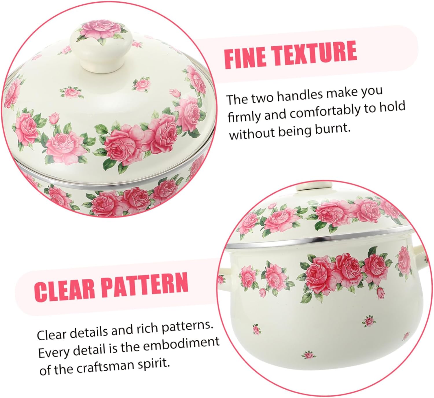 Package List 1 x Enamel Stew Pot Features -Color: Pink stew pots with lids - Size: 20.00X20.00X19.50cm/7.86X7.86X7.66in Retro Pattern Stew Pot -Material: Enamel Enamel Soup Pot -It can not only the taste of the food, but also can beautify your kitchen Double Handle Stew Pot. -Ergonomic design provides a comfortable holding and prevents heat generation Enamel Pot. -Having high temperature resistance trait, the stew pot is and ramen pot with lid. -The soup pot is fast heating of food, energy saving, and slow heat dissipation large boiling pot. -The retro pattern on the pan can remind you of the past and has a decorative effect Dual-handle Cooking Pot.Goods InformationRetro Pattern Stew Pot Are you looking cooking pot? want to make delicious soups for your families? This stew pot will be your .enamel stock pot Simple and convenient to cook with it.Old-fashioned Stew Pot Two side comes with handles, which the comfort for your holding