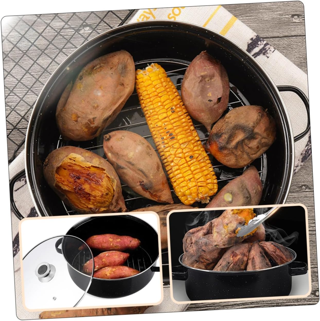 Roasted Sweet Potato Pot with Flue Multifunctional Kitchen Roasting Pot for Corn Chicken Wings Sturdy Non-Stick Design for Family Gatherings