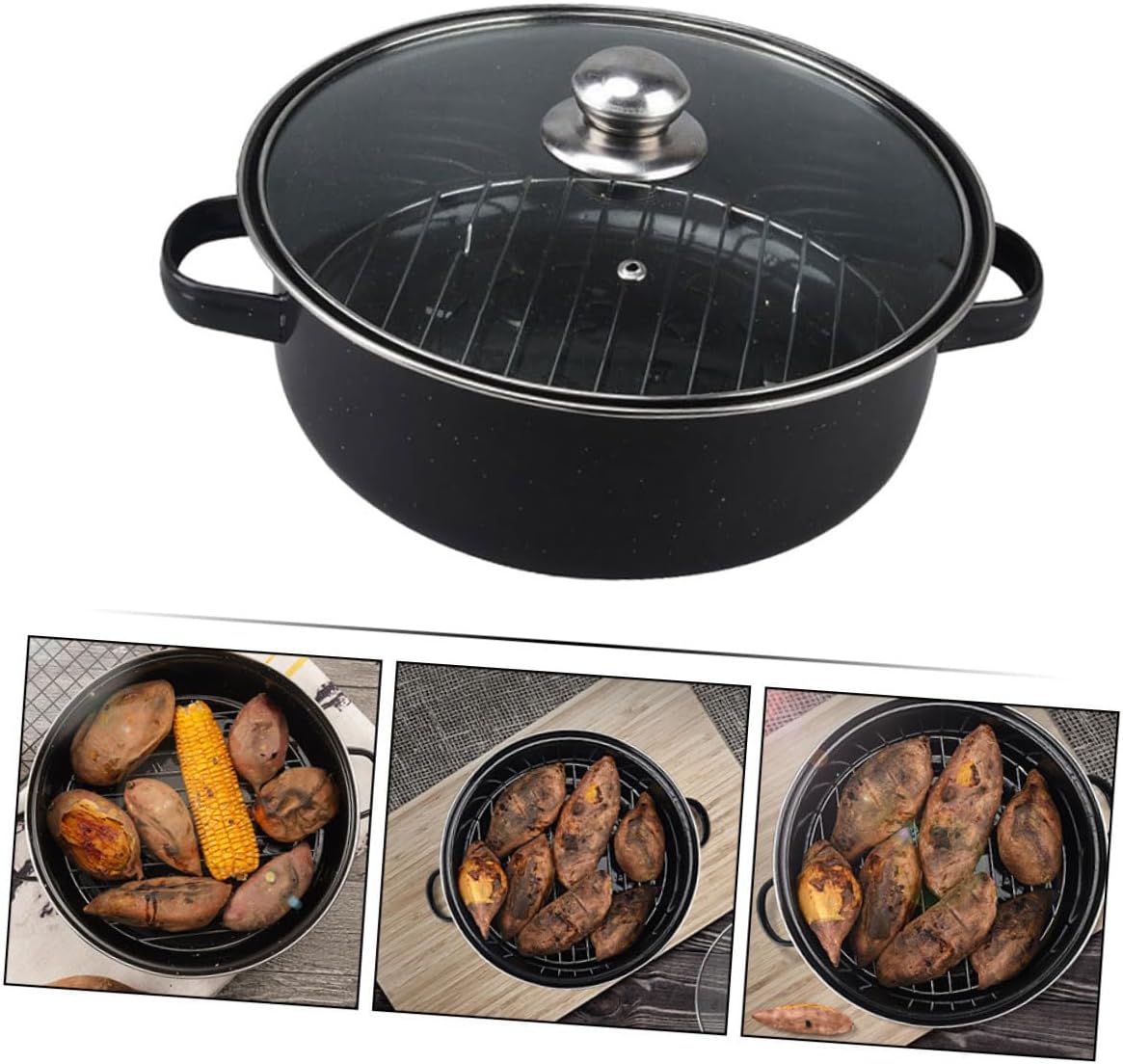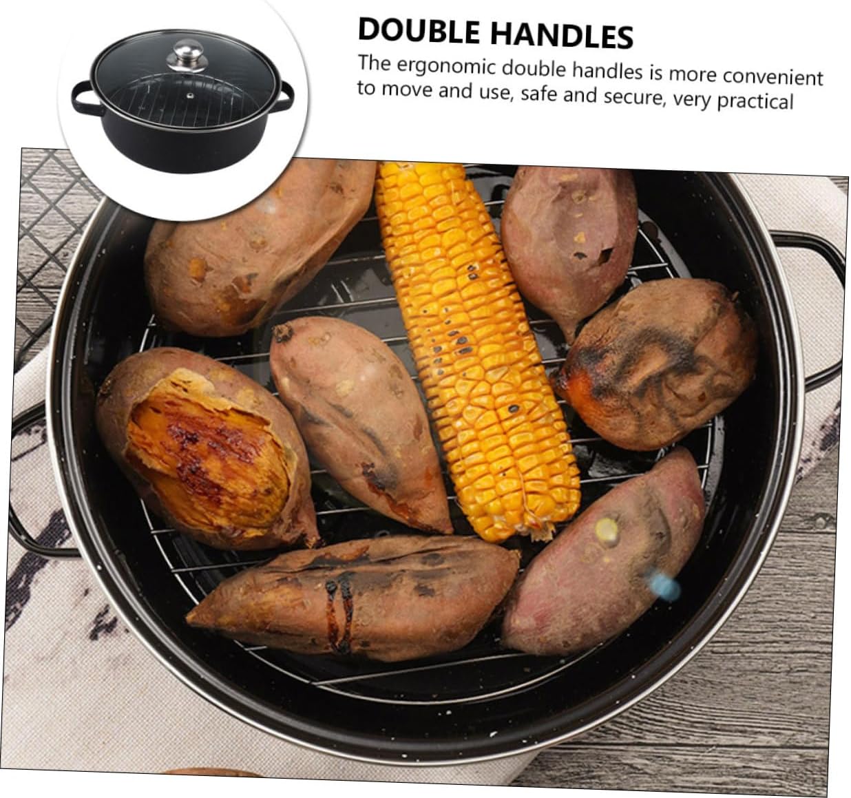Package Include 1 x pot with lid Features -Size:32.00X28.00X14.00cm/12.58X11.00X5.50in enamel baked pot -Material:Glass, iron cooking accessory -Color: cooker - You can make many delicious food with it, in your kitchen roaster oven. - The double handles can prevent you from being scalded, wear resistant and safe to use daily use roasting pan. - Suitable for garden party, food party, family gathering, friends gathering, camping, daily baking, etc roasting pot. - This roasted pot is carefully selected materials, smooth edges without burrs turkey roasting pan. - Easy to heat and heat evenly, the food is easier to heat and shorten the cooking time and the oil temperature is uniform and not easy to smoke turkey roaster.Goods Informationpotato stove You can also share it with your family.turkey pan for oven A must-have cookware for your kitchen.cooking supply If you like to eat roasted sweet potatoes, then you miss our Cooking Pot with Lid.multi-function roasting pot You can use it to make roasted sweet potato, corns, etc.turkey pan This roasted pot is carefully selected materials, smooth edges without burrs
