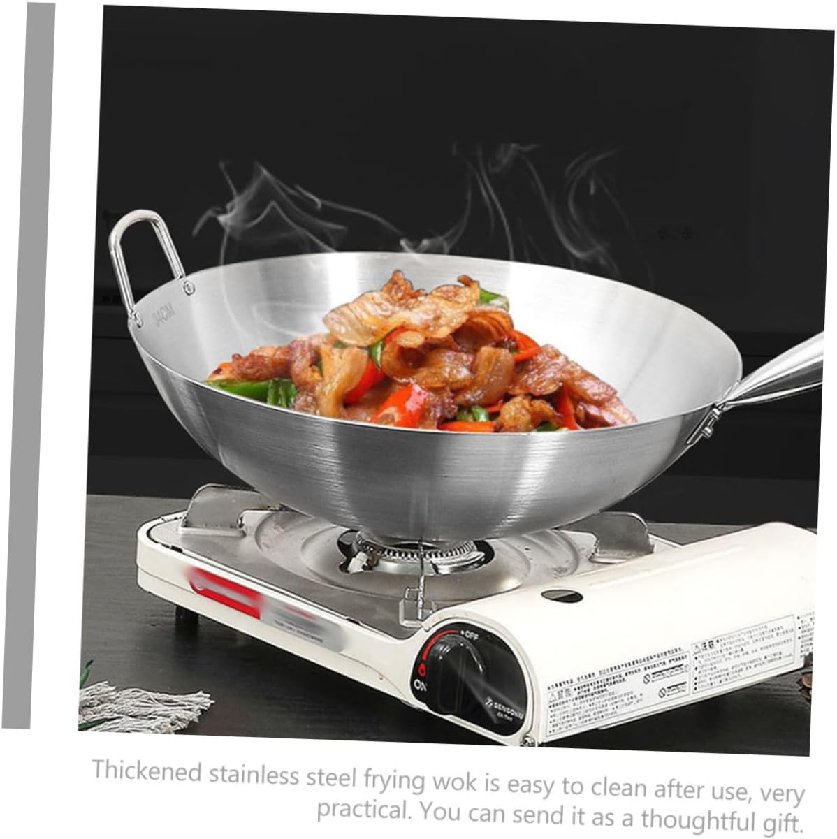 Package List 1 x Cooking Wok Features -Product Info:Frying pan -Color:Silver wok metal - Size: 54.00X34.00X7.50cm/21.22X13.36X2.95in wok non stick -Material:Stainless Steel,Wood cooking tools - Smooth nonstick, easy to clean, wood handle anti-scalding. Integrated molding, heat evenly when you cooking restaurant wok. - Outstanding workmanship, reasonable design, stable and practical, will bring you a hand hammered wok. - The frying wok can be placed directly on the stove to heat the product. Not easy to stick to the pot, easy to clean stove metal wok. - Wooden handle design, this frying wok is easy to move. Wide range of use, can be used in daily life metal wok. - Made of stainless steel material, and safe, smooth and the nonstick design can allow your cook food without burning wok essentials.Goods Descriptionmetal stove wok Made of stainless steel material, with good texture, safe and practical.hand hammered wok Easy to install and use, it can be easily applied to your kitchen.home wok pan Are you looking for stainless steel wok for your home daily use? This stainless steel wok can meet your using needs.wok non stick It is a very practical accessory that will meet your needs well
