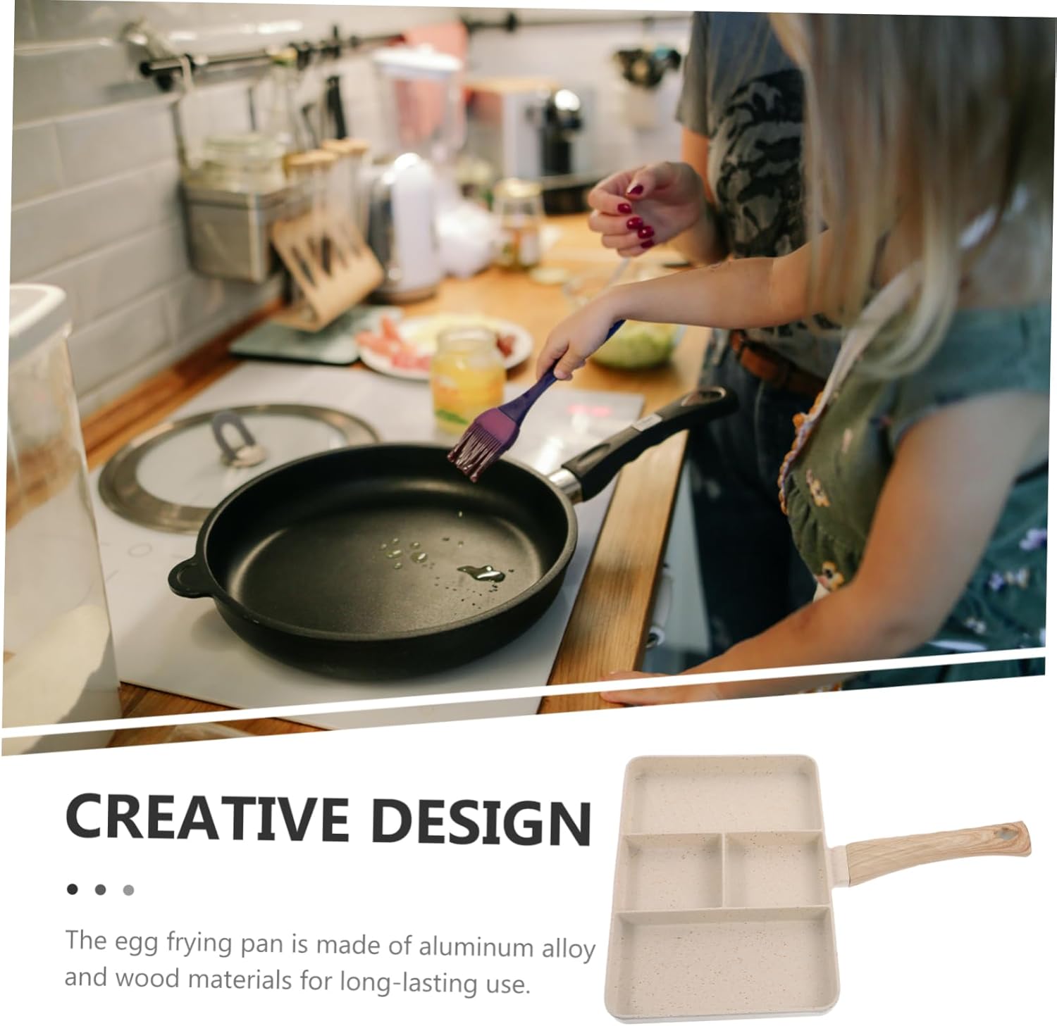 Package Include 1 x Frying Pan Features -Size:35.00X27.50X2.30cm/13.76X10.81X0.90in non stick frying pan -Material:Aluminum alloy and wood divided pan nonstick -Product Info:Maifanshi fried egg pot -Color:Beige pancake frying pan nonstick -Non stick coating, and healthy, easy to cook, stains are not easy to remain pans for induction stove. -It has the characteristics of hard texture, not easy to deform, good heat transfer effect frying pan with dividers. -Plural grooves design egg frying pan is suitable for use in home kitchen, restaurant deep fry pan. -Cooking is quicker and easier, requiring only a few simple steps. Division design can cook bacon, eggs, sausage, steak, chicken breast and other ingredients at the same time non stick cooking pan. -The surface is non-sticky, clean and . A great egg and pancake cooking tool nonstick pan.Goods Descriptionegg skillet nonstick With creative design, it can keep food from rolling and sliding.egg breakfast pans The non-stick pan is convenient to use and clean.stir fry pan Wear-resistant bottom design of the pan can heat evenly and save effort.non stick pan It is perfect for making fried eggs, sandwiches, chicken, egg , etc.frying pan for induction stove Frying Pan is made of , and you can rest assured to use