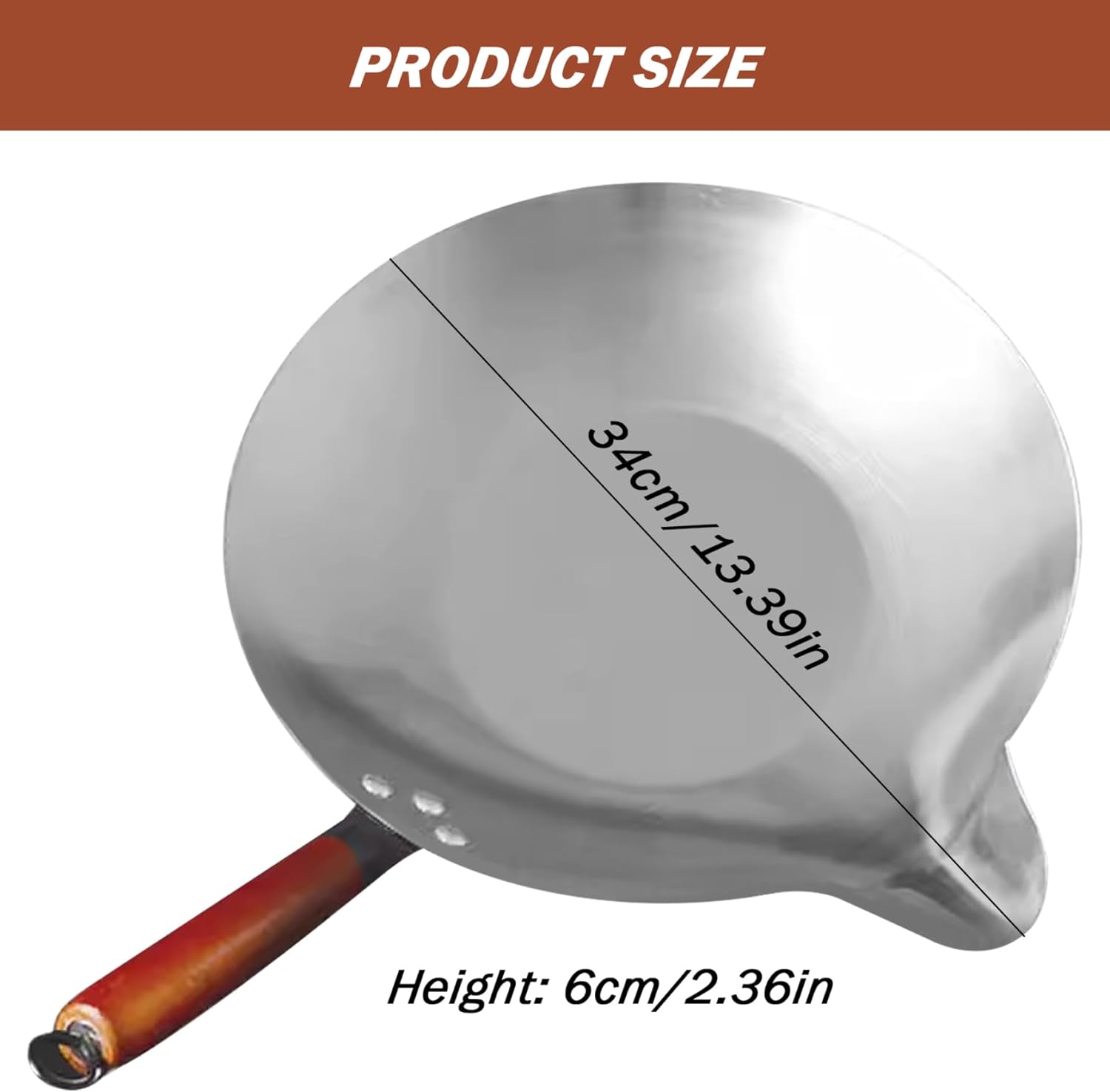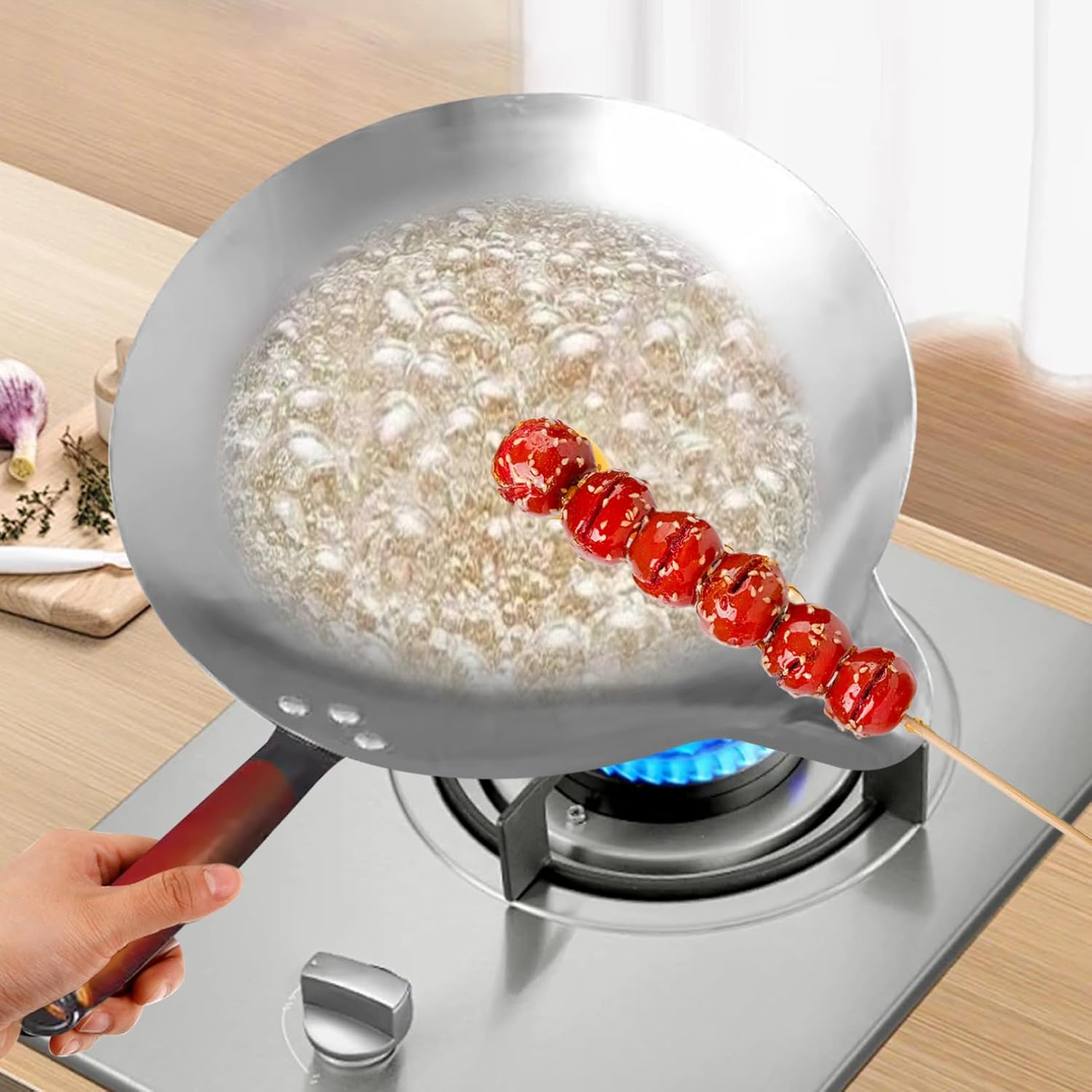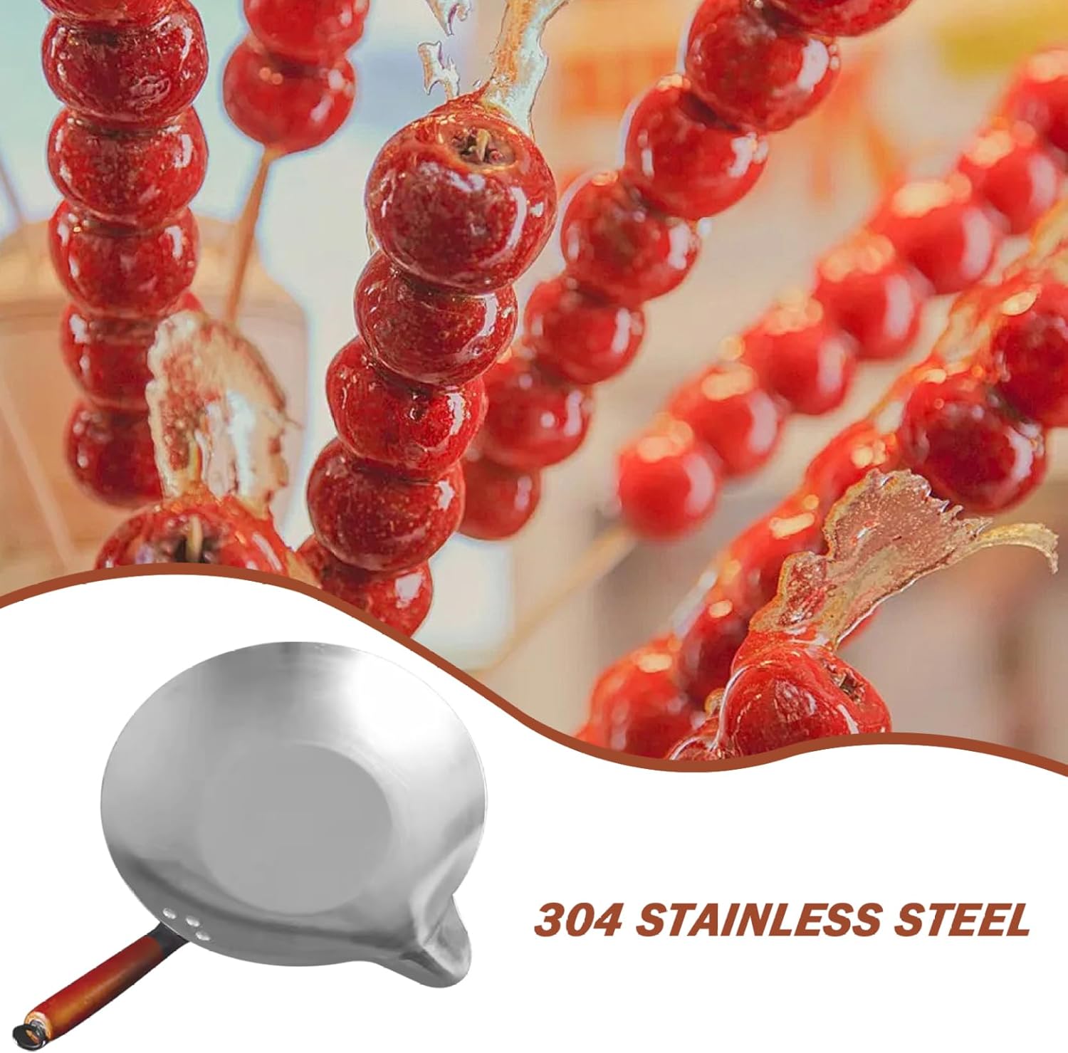 Double Boilers, Candy Melting Pot Candy Melter with V Spout Cast Iron Wok with Heat Resistant Handle Stainless Steel Tanghulu Sugar Dipping Pan Candy Melter Pot Description: Enjoy consistent performance with our stable and efficient flat-bottomed design, perfect for melting chocolates, candies, or creating delectable dessert sauces with ease. Crafted from quality stainless steel, this large melting pot is built to last. Whether for parties or family gatherings, melt large quantities of cheese effortlessly and enjoy hassle-free entertainment. Features:. Candy Melting Pot. -Color: As shown. -Material: stainless steel. -Size: about A diameter of 34 cm/13.39 inch., Height 6 cm/2.36 inch. Note: Manual measurement, please allow slight errors on size. The colors may exist slight difference due to different screens. Package Including 1 * Candy Melting Pot