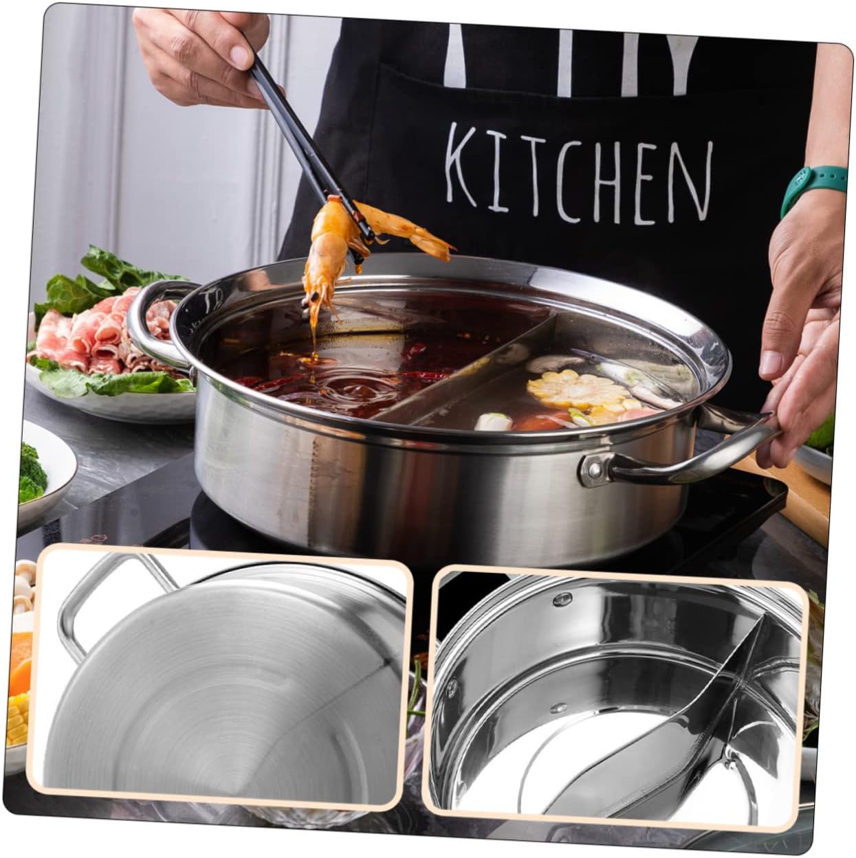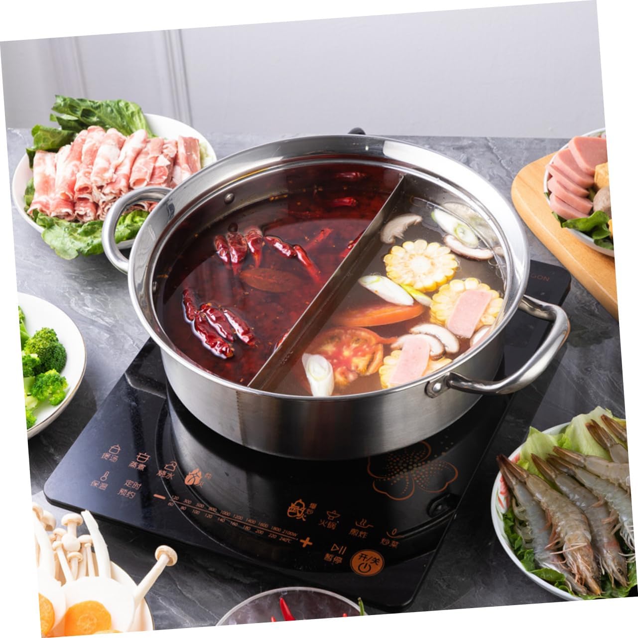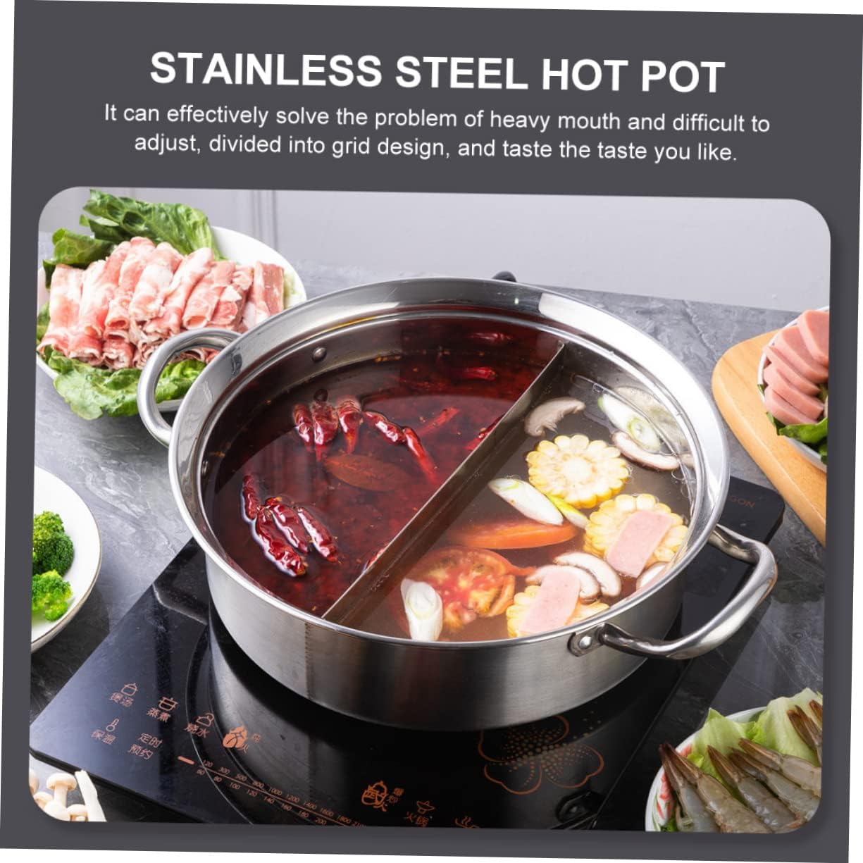 Package Include 1 x two-flavor hot pot with lid Features -Size: About 26.00X26.00X8.80cm/10.22X10.22X3.46inch Two Flavor Hot Pot. -Material: Stainless steel, tempered glass Hot Pot. -Strong, wear- , anti- , to deform and break Induction Cooker Pot. -The handle is strong and firm, to break, and easy to hold Cooking Pot. -Made of materials, and can be used long time Stainless Steel Cookware. -The inside is smooth, easy to clean, and can be reused Home Pot. -You can buy this hot pot at a very Pot.Goods DescriptionInduction Cooker Pot This is a hot pot cooker.Two Flavor Hot Pot Use food grade stainless steel and tempered glass materials.Household Hot Pot Basin Equipped with a thick tempered glass cover, suitable for family, friends gatherings and hot pot restaurants