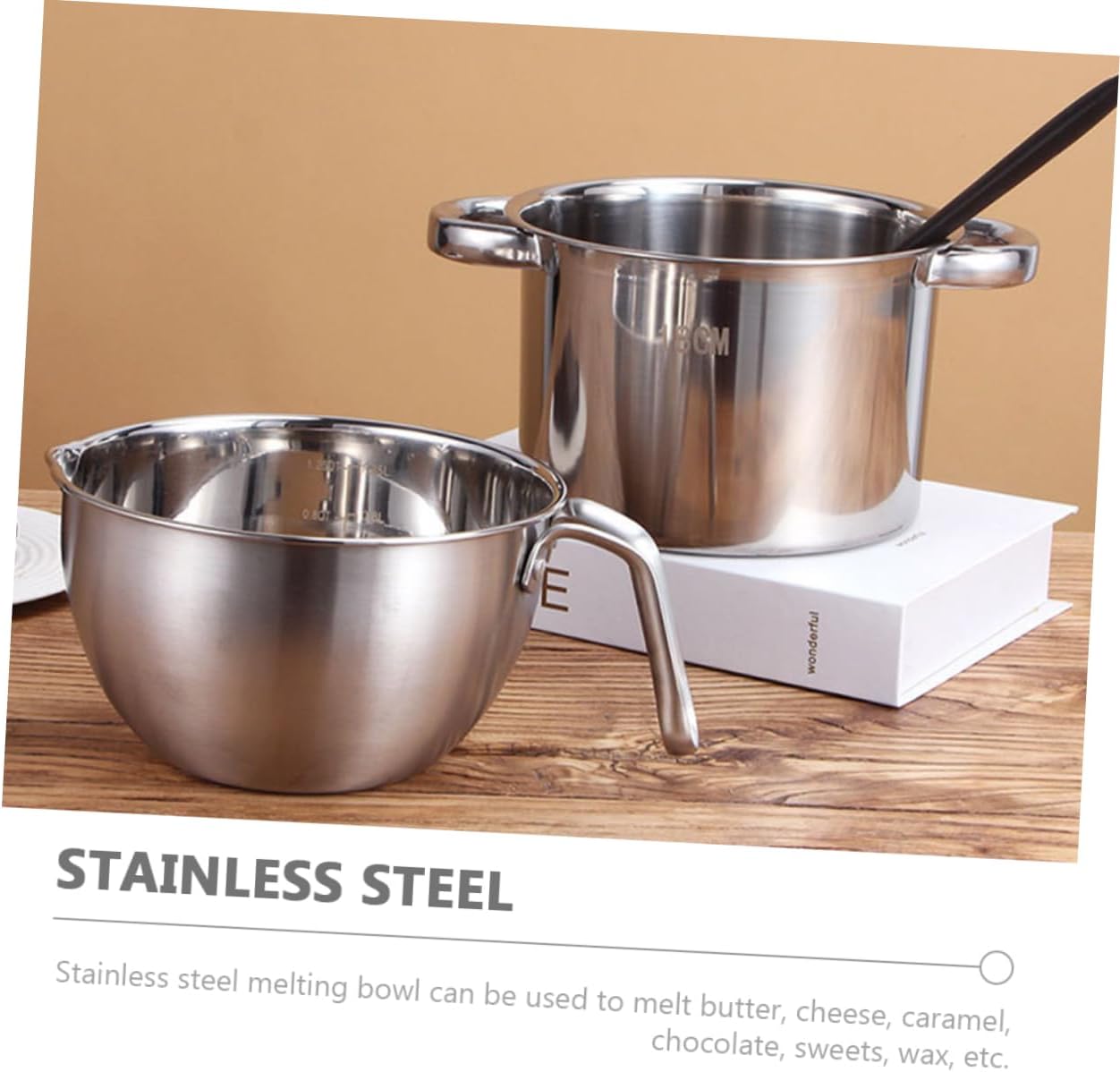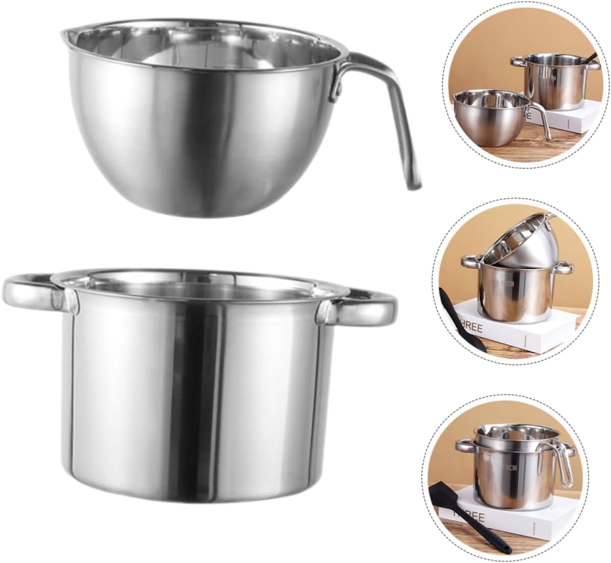 Package List 1 x outer pot 1 x interior pot Characteristics -Size:16.00X9.70X9.00cm/6.29X3.81X3.54in(interior pot) Stainless Steel Chocolate Melting Pot -Material:Stainless steel milk cooker -Size:18.00X18.00X11.50cm/7.07X7.07X4.52in(outer pot) stovetop milk warmer -Color:Silver Double Boiler For Chocolate Melting - The melting pots are adopted with Stainless Steel material, sturdy and for long-term use chocolate melting pot for dipping. - A perfect heating and melting pot. Melting Bowl is suitable for home, bakeries, cake shops, restaurants, etc Kitchen Supplies. - Fine workmanship and creative appearance their popularity and practicality. Not easy to break and deform. double boiler stainless steel - This melting pot is the great for friends and relatives who like baking and cooking mixing bowl for chocolate melting. - Stainless steel melting bowl is perfect for cheese, butter, candy, chocolate, candle, caramel, etc chocolate melt bowl.Goods InformationButter Heating Pot Are you looking for and convenient melting pot? If your answer is yes, please come and take at the melting pot! Our professional melting pot must meet your needs.butter coffee warmer The melting pot is your .Double Boiler For Chocolate Melting Made of stainless steel materials, and