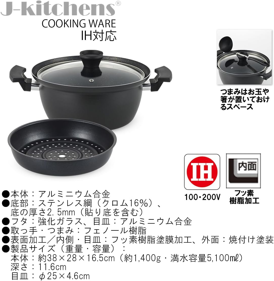 Comes with a deep pot that is convenient for simmering. Enjoy nutritious hot vegetables with ease. Deep enough to be used to cook pasta or boiled vegetables. The inner surface is fluorine resin for easy care. The lid knob provides space for ladles and chopsticks. Note: Please check the materials we have hand inputed on the product page. Please note that materials listed in the Amazon "Details" section may not be accurately reflected if no applicable listing is available. Therefore, please do not refer to this information.