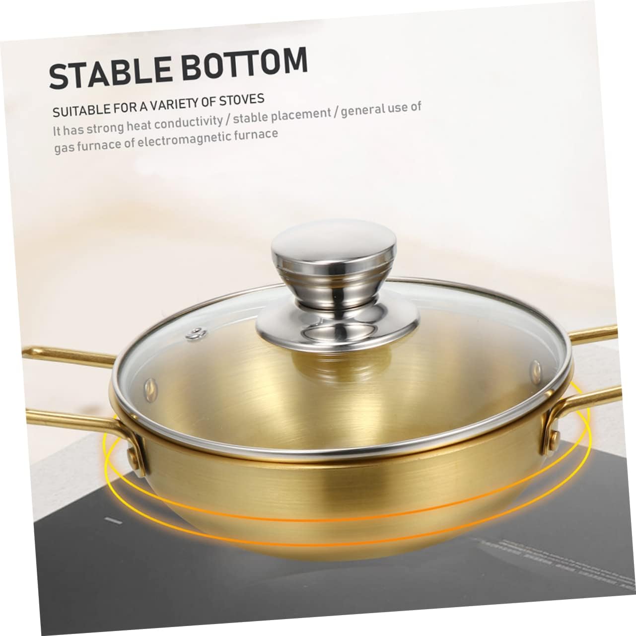 Package List 1 x pot with lid Characteristics -Material: Stainless steel, glass stainless steel cooking pot - Size: 32.20X23.00X5.90cm/12.65X9.04X2.32in stainless steel ramen pot - Color: Golden korean ramen pot with lid -Light weight, easy to use, proper size, save much more space for you and your kitchen, very convenient korean ramen cooker. -This cooking pot is widely used for camping, hiking, picnic, backyard parties, patio and dinner party, etc korean ramen noodle pot. -Smooth surface, easy to use and clean, and with handles design, will not scald or hurt your hands stainless steel pot. -Made from stainless steel material and detailed craftsmanship, and sturdy for pots for cooking. -Can be used in induction cooker, gas stove, the ramen pot can be used for cooking porridge, noodles and soup korean ramen cooking pot.Goods Descriptionsoup pots Useful kitchen cooking tool that can be used for cooking ramen.korean soup pot It can be placed directly on the stove to heat the product with easy and convenient handle design.korean pots The multi-functional pot is made from stainless steel and glass material with non-stick function, and it is easy to clean.stainless steel ramen pot And it has a lid, very to be used in kitchen
