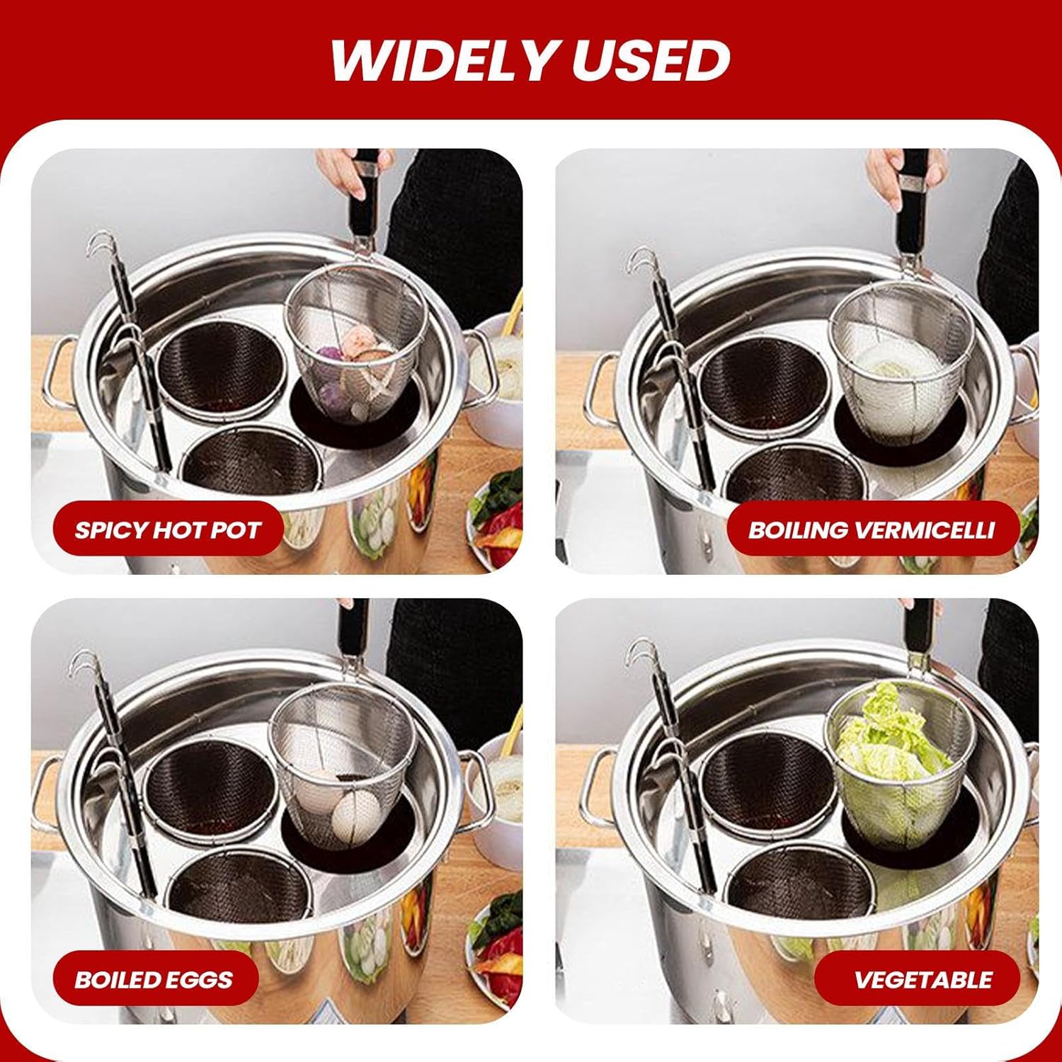 The Household Pasta Pot is designed to simplify cooking for both busy families and individuals. With strainers, this stainless steel kitchen item ensures efficient meal preparation for home use. Whether beginner or experienced cook, it perfectly suits various needs, including preparing vegetables, soups and pasta dishes. Ideal for festive gatherings, themed events or formal dinners, this versatile tool makes preparing great meals easy. Its sturdy construction makes it suitable for both indoor and outdoor use, even during camping trips. Specification: Product Name: Pasta Pot with Strainer Basket Product material: 304 stainless steel Pot size: about 35x2 2cm/13.78x8.66inch Strainer size: as shown in the figure Product List: 1 x pasta pot. 1 x 3-hole pasta rack. 3 x strainer basket. Notes: Due to the different lighting and screen settings, the item's color may be slightly different from the picture. Due to manual measurement, there may be errors in the product size, please understand.