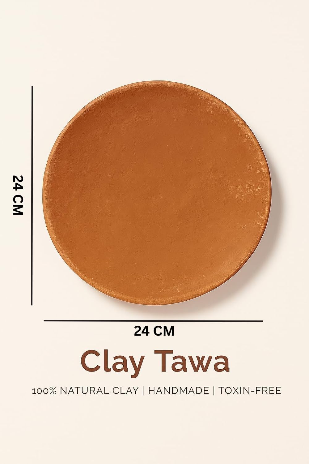 Bring back the essence of traditional Indian cooking with our Handcrafted Clay Tawa. Perfect for making rotis, chapatis, and parathas, this eco-friendly tawa is crafted using 100% natural clay. The porous nature of clay helps retain moisture and nutrients, ensuring your meals are healthier and more flavorful. Unlike metal tawas, this earthenware promotes even heating and imparts a unique earthy aroma to your dishes. Whether you're cooking on a gas stove or displaying it as kitchen décor, this tawa offers authenticity, health, and heritage — all in one product.