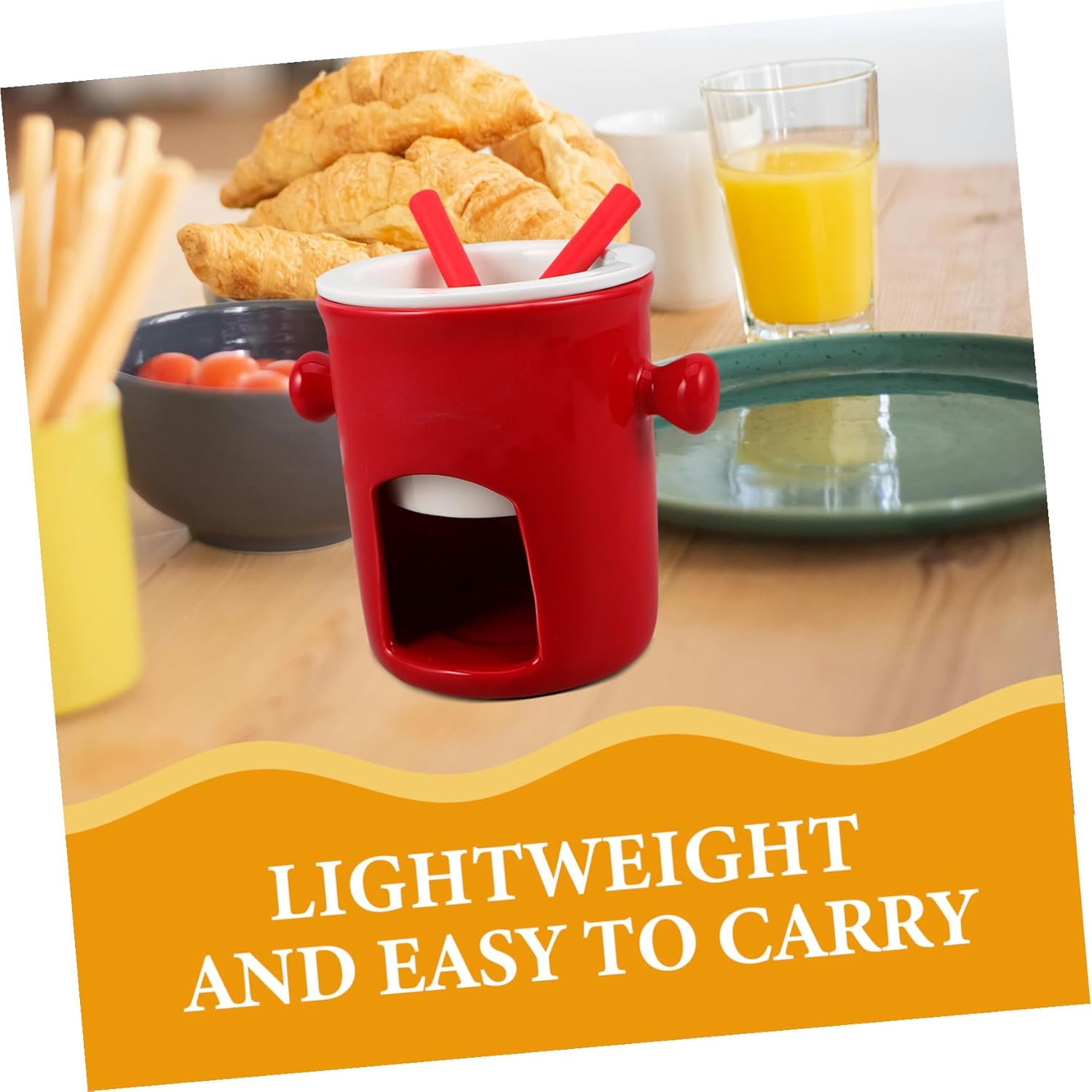 Package Include 1 x Chocolate Fondue Pot 2 x fork Features - Size: 12.00X1.00X1.00cm/4.72X0.39X0.39in (fork) chocolate warmer -Product Info:Ice cream hot pot cup -Chocolate fondue fun: ingeniously combines chocolate fondue, enjoy desserts and making sweet moments more interesting fondue pot -Unique style: the design that caters to consumers seeking unique individuality, showcasing personal taste porcelain butter warmer -Color:Red butter warmer pot - Size: 15.00X13.00X11.00cm/5.89X5.11X4.32in (pot) small fondue pot -Material:Ceramic, Stainless Steel fondue pot mug -Creative design: combines the concepts of ice cream and fondue, adding fun to family gatherings chocolate warmers for dipping -Convenient for home use: ideal for warm sharing in winter or enjoying both hot and cold treats in summer chocolate tempering pot -ceramic: made from ceramic material, it not only retains heat well but also enhances the artistic feel of your dining table ceramic fondue potGoods Descriptionbutter warmer Its elegant design adds a touch of sophistication to any gathering, making it a must-have for chocolate lovers.chocolate fondue mug This stylish and creative ceramic fondue set is for home use, offering a unique way to enjoy chocolate fondue.ceramic butter warmer The ceramic material even heating, making it ideal for melting chocolate smoothly