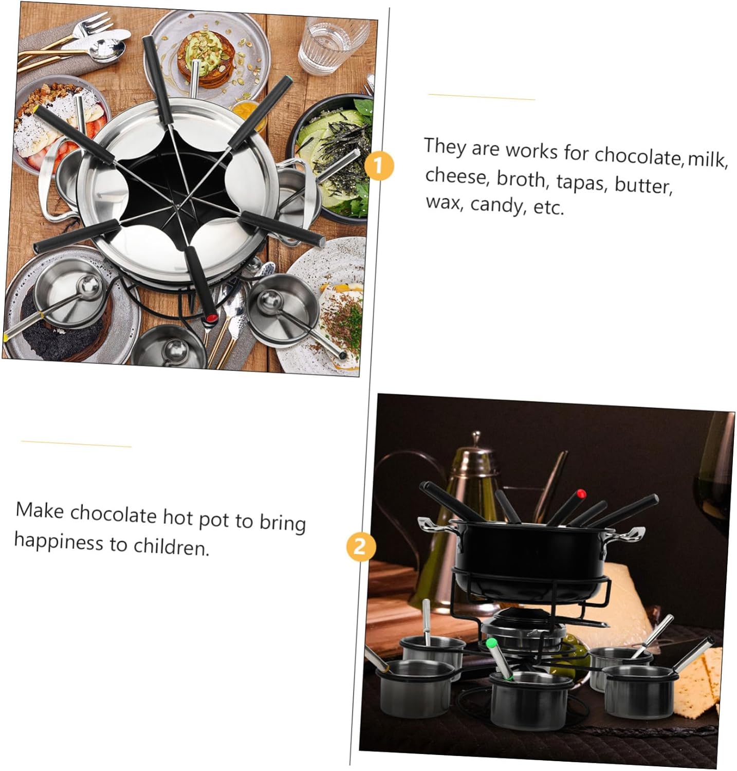 Package Include 1 x Melting Pot 6 x Forks 6 x Spoons 6 x Small Bowls 1 Characteristics -Color: Black Stainless Steel Stove -Material: Stainless Steel, Iron and Plastic Fondue Stove -Size: About 25.00X18.00X8.00cm/9.82X7.07X3.14in Stainless Steel Pot Stove - workmanship and simple appearance. High temperature resistance design, They are not easy to crack Portable Fondue Stove. - You can use it to heat and melt candy, wax, chocolate, butter, cheese, tapas, milk, broth, etc Fondue Cookware. - Using iron plastic and stainless steel materials of and fine craftsmanship, strong and sturdy for a long serving life Cheese Heater. - The melting pot set is widely applied in home, bakeries, cake shops, restaurants, shopping malls, etc Stainless Steel Chocolate Fondue. - Although the design of these products is simple, they are so practical when you use them Burner Fondue Stove.Goods DescriptionPot Cookware Lightweight and compact, provides convenience to store and carry out.Stainless Steel Stove This product is a fondue stove, adoption of .Portable Fondue Stove for you.Chocolate Stove Great stove for fondue or other cooking use