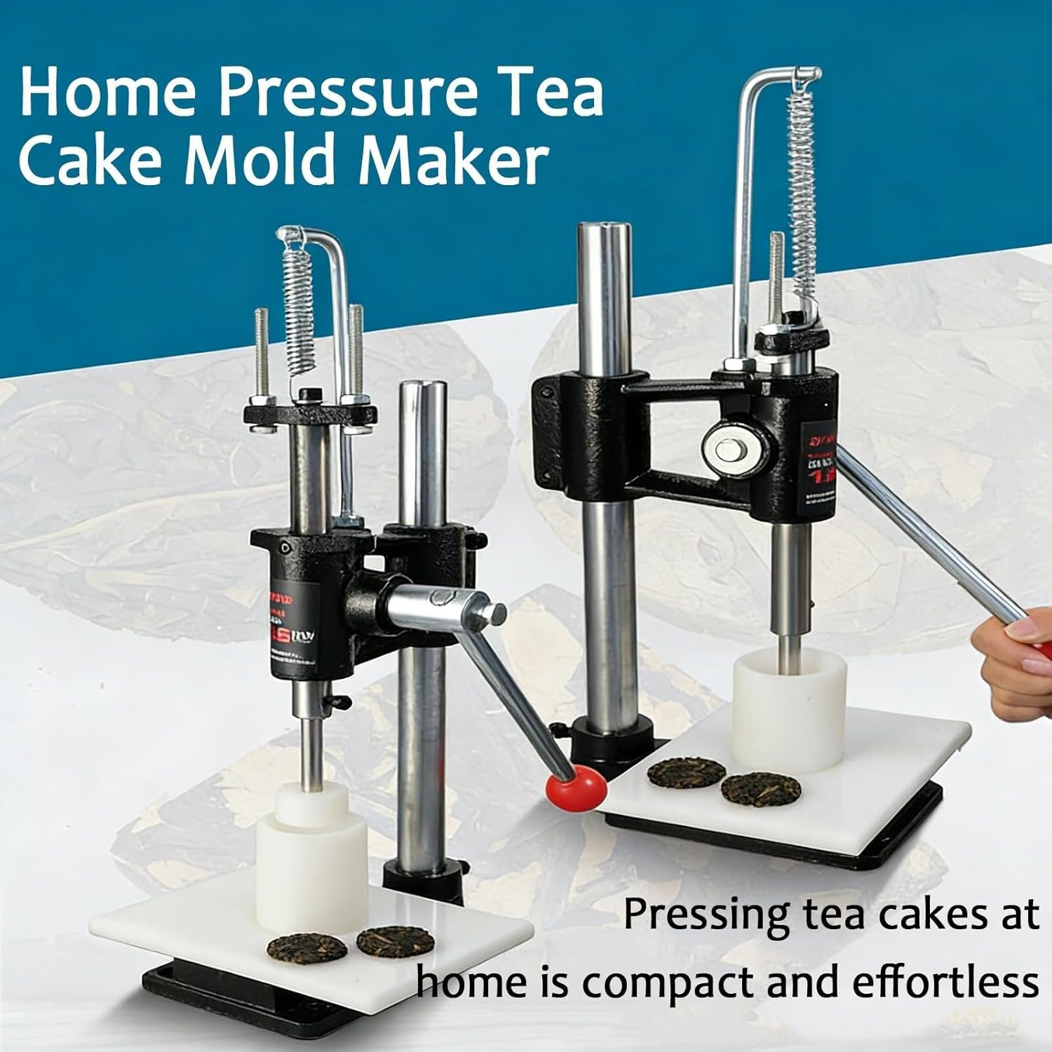 Looking for a reliable way to press your own tea cakes at home? Our Manual Tea Cake Press Machine is designed for tea enthusiasts and small-scale producers, featuring a heavy-duty metal frame, pressing mold, and adjustable handle angle to create perfectly compact tea cakes every time.Features:1. Heavy-duty build with solid handle, cast-iron head and thickened base for long-lasting use.2. Adjustable handle angle for ergonomic comfort and reduced pressing effort.3. 3-step simple operation for consistent, uniform tea cake results.4. Anti-slip base ensures stable compression, no displacement during use.5. Power-free design, ideal for home & small tea studio tea cake crafting.6. Preserve traditional tea culture, craft artisanal tea cakes for flavor maturation.Specifications:Product Name: Manual Tea Cake Pressing MachineMaterial: Stainless Steel + PPFinished Product Diameter: 4cmMaximum Pressure: 160kgProduct Dimensions: 12×16×39cm/4.72×6.3×15.35inPackage Dimensions: 23×16×41cm/9.06×6.3×16.14inNet Weight: 5.5kg/12.13lbsGross Weight: 6kg/13.23lbsUses: Pressing tea cakes at home; compact and labor-saving.Packaging List:1 × Manual Tea Cake Pressing Machine1 × 4cm MoldNotes:1. Please allow the slight color difference caused by the shooting light and 1-3cm error due to manual measurement.2. If you have any questions please contact me and I will reply you within 24 hours.