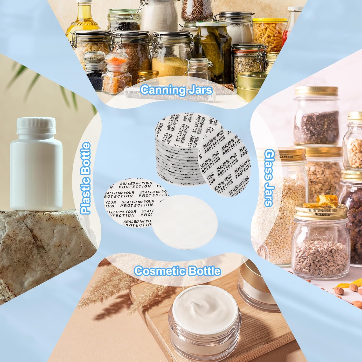 Foam lid liners are coated with a torque-activated coating, after tightening the lid, they can be adhesive to glass, plastic, metal jars, and round containers with metal or plastic lids and closures.Advantage1. The foam lid liners are made of polystyrene foam which has a great leak-proof effect and can avoid dust, moisture, and dirt into the jar, maintaining the freshness of products and avoiding odors.2. Easy to install or peel. No induction sealers or heat shrink bands are needed.Instruction1. Clean the bottle top thoroughly with a clean cloth to ensure there are no liquid, solid or oily residues;2. Place the the lettering side of the seal into the bottle cap, apply a little pressure to fit it tightly (the white side of the seal should face down, and the side with black letters should face up.)3. Screw the lid tightly, and the pressure of applying the lid activates the seal and will adhere within 12-24 hours.NOTE1. Please check the outer diameter of the bottleneck or the inner diameter of the cap before purchasing.2. Place away from direct sunlight and high temperatures.3. Once the seal is removed, the tightness will be affected when reused.4. The liner is best sealed with powder or dry products, not suitable for applications containing oil.5. Avoid overfilling the container.