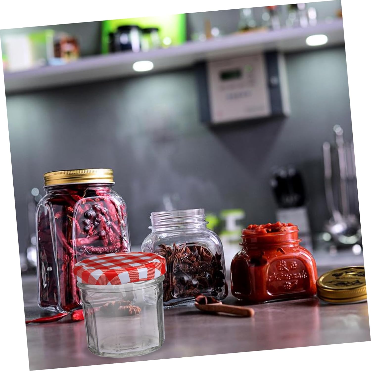 Package List 12 x glass jars (random color of lid) Features -Product Info:Glass storage bottle - Material: High-white Glass Honey Storage Sealed Canisters. - The airtight lid keeps moisture from the food inside, practical and Food Storage Containers. - You can see the stuffs inside through the transparent material Glass Storage Jars. - They can also be hold many things with transparent bottle, sleek and round bottle mouth design Jam Jar. - Suitable for many kitchen staples, such as jam, honey, 's , pickles, etc Glass Sealed Jar. - A good helper for storing food and other small nuts Glass Jam Jar.Goods DescriptionHoney Pot Container The food storage jars with lid.Glass Sealed Jar You can use them to hold many things, they are very convenient for you to storage food, easy to clean and use.Food Storage Containers Made of glass material, they are and safe for use.Honey Storage Sealed Canisters The great seal effect to keep food clean and dry