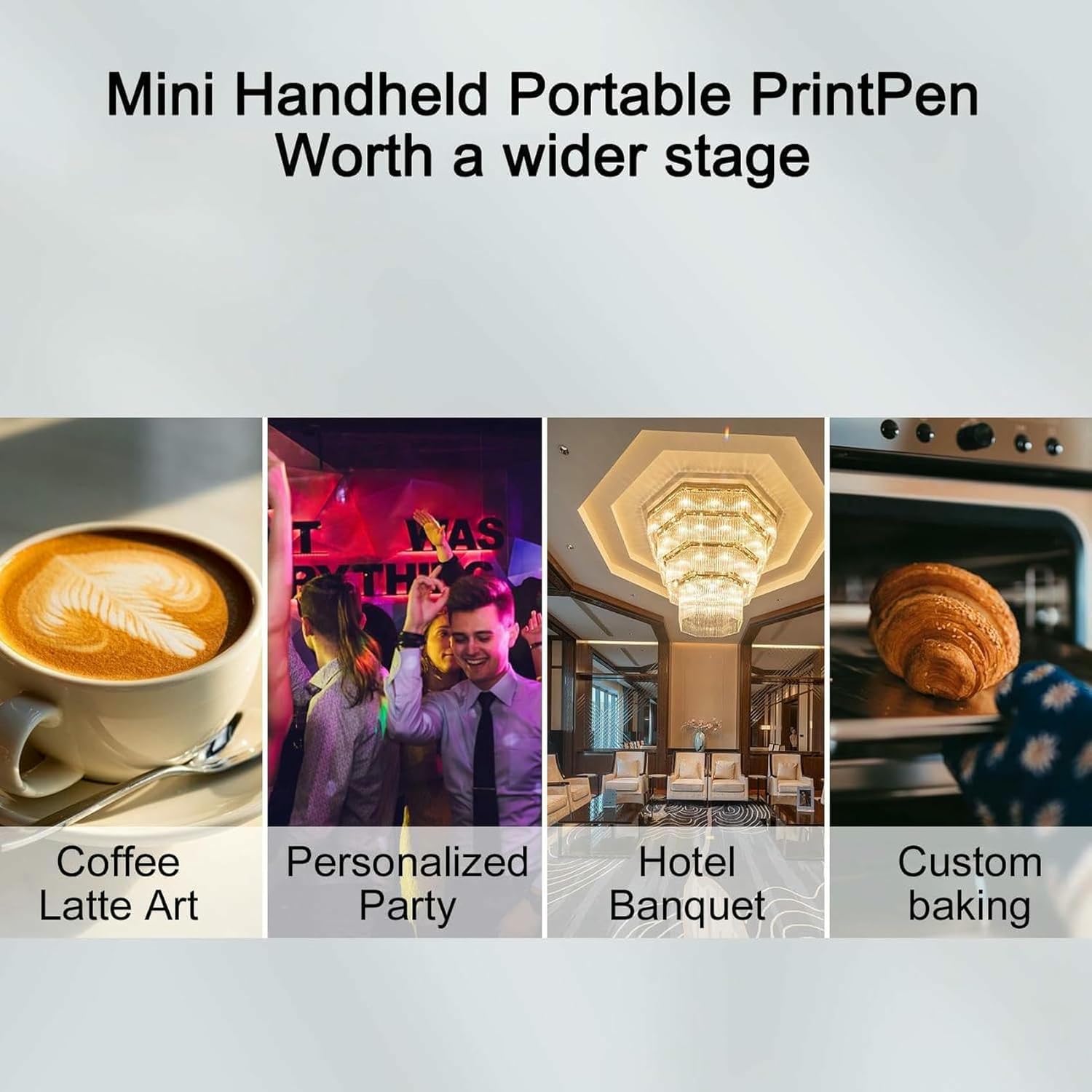 Features: 1. Customized logos can be printed on food 2. Add more creative designs on food to attract more customers 3. The application runs independently 4. Small and beautiful appearance, with handheld and portable functions, enjoy the fun of printing at any timeDescription: Name: Food Printer Power: 1200mah, 7.2v Printing size: 26mm Precision: 300dpi Charging method: Type-C Ink cartridge usage: standard printing/about 3500 times Battery: standard printing 2000 times/single charge Weight: 500g Dimensions: 24*17*6cmPacking list: 1*Printer 1*Charging cable 1*Food ink 1*Instruction manual