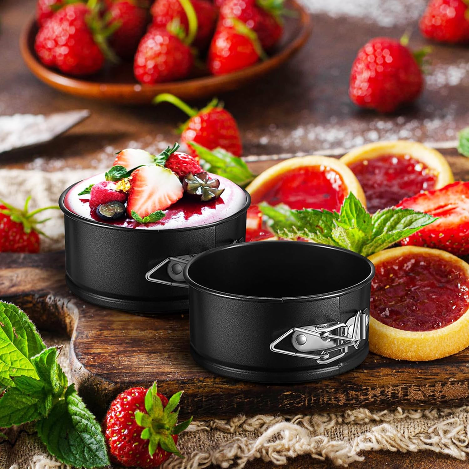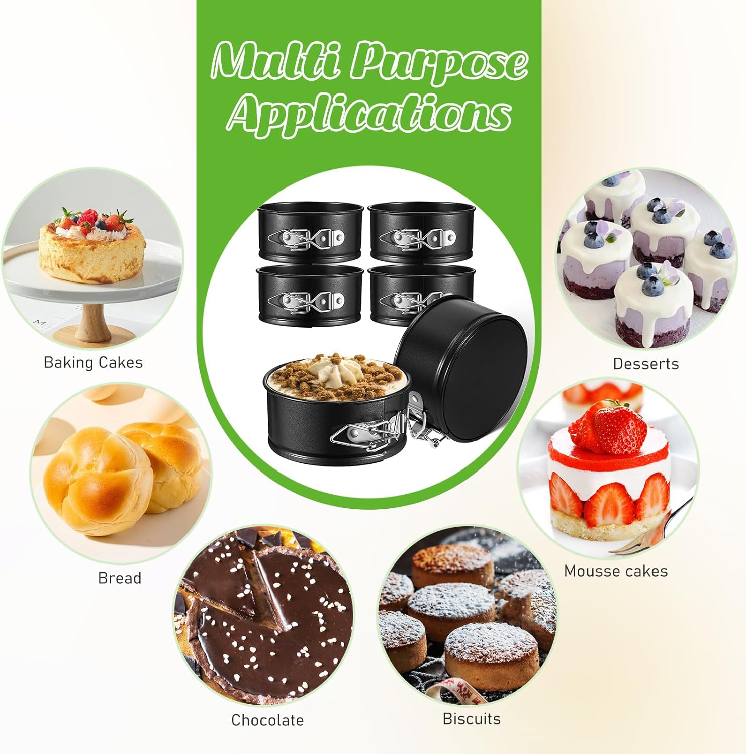 Package List 6 x cake pans Characteristics -Size:12.00X11.00X5.10cm/4.72X4.32X2.00in -Color:Black -Effortless Release: Thanks to the non-stick coating, cakes slide out smoothly from the cake pans, allowing for beautiful, intact presentations baking tools -Strong Material: Our cake molds are made from carbon steel, even baking that enhances the overall presentation of your cakes -Secure and Reliable: The spring latch mechanism that the cake mold stays firmly in place, preventing any leaks while baking cheesecake pan -Material:Carbon steel -Compact and Convenient: This set of mini cake pans is nice for those who love to experiment with desserts, providing possibilities for baking carbon steel cake mold -Ideal for All Occasions: Whether you're preparing for a birthday celebration or a casual family gathering, these round cake molds are versatile enough to suit any event cake molds for baking -Product Info: Cake mold Goods Informationmini baking pans Nice for both professional bakers and home cooks alike.cake pans for baking The sturdy construction performance, while the sleek design adds elegance to your kitchen.baking cake pan Our cake molds cater to your baking needs.molds for baking Whether you're making mini cakes, cheesecakes, or mousse desserts, these cake pans provide the versatility you need