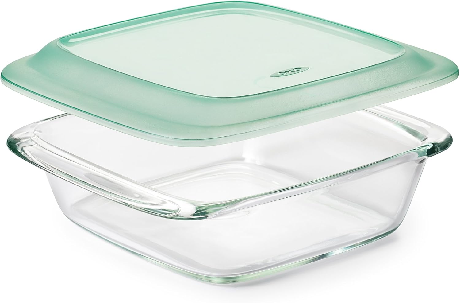 OXO Good Grips Freezer-to-Oven Safe 3 Qt Glass Baking Dish with Lid, 9 x 13,Clear,9 x 13"At OXO, we know the joys of cooking and baking - whether it's trying a new recipe for yourself, feeding family and friends, or bringing a dish to a potluck to share, it's a labor of love. But we also know what labor we don't love: Dishes. Between prepping, cooking, serving and storing, one meal can fill up a sink in a flash. The OXO Good Grips Glass Bakeware line saves time and reduces the number of dishes to clean, all while providing superior performance. This line of Bakeware is made of borosilicate glass, a durable type of glass that can withstand extreme temperature changes without breaking or shattering. This means the dishes can go from the directly from the freezer or refrigerator to the oven without breaking. Glass is naturally BPA free, and provides an elegant look you can bring right to the table. Please note the product is not intended for use under a broiler.OXO Good Grips Freezer-to-Oven Safe 2 Qt Glass Baking Dish with Lid,Clear,8 x 8"At OXO, we know the joys of cooking and baking - whether it's trying a new recipe for yourself, feeding family and friends, or bringing a dish to a potluck to share, it's a labor of love. But we also know what labor we don't love: Dishes. Between prepping, cooking, serving and storing, one meal can fill up a sink in a flash. The OXO Good Grips Glass Bakeware line saves time and reduces the number of dishes to clean, all while providing superior performance. This line of Bakeware is made of borosilicate glass, a durable type of glass that can withstand extreme temperature changes without breaking or shattering. This means the dishes can go from the directly from the freezer or refrigerator to the oven without breaking. Glass is naturally BPA free, and provides an elegant look you can bring right to the table. Please note this product is not intended for use under a broiler.