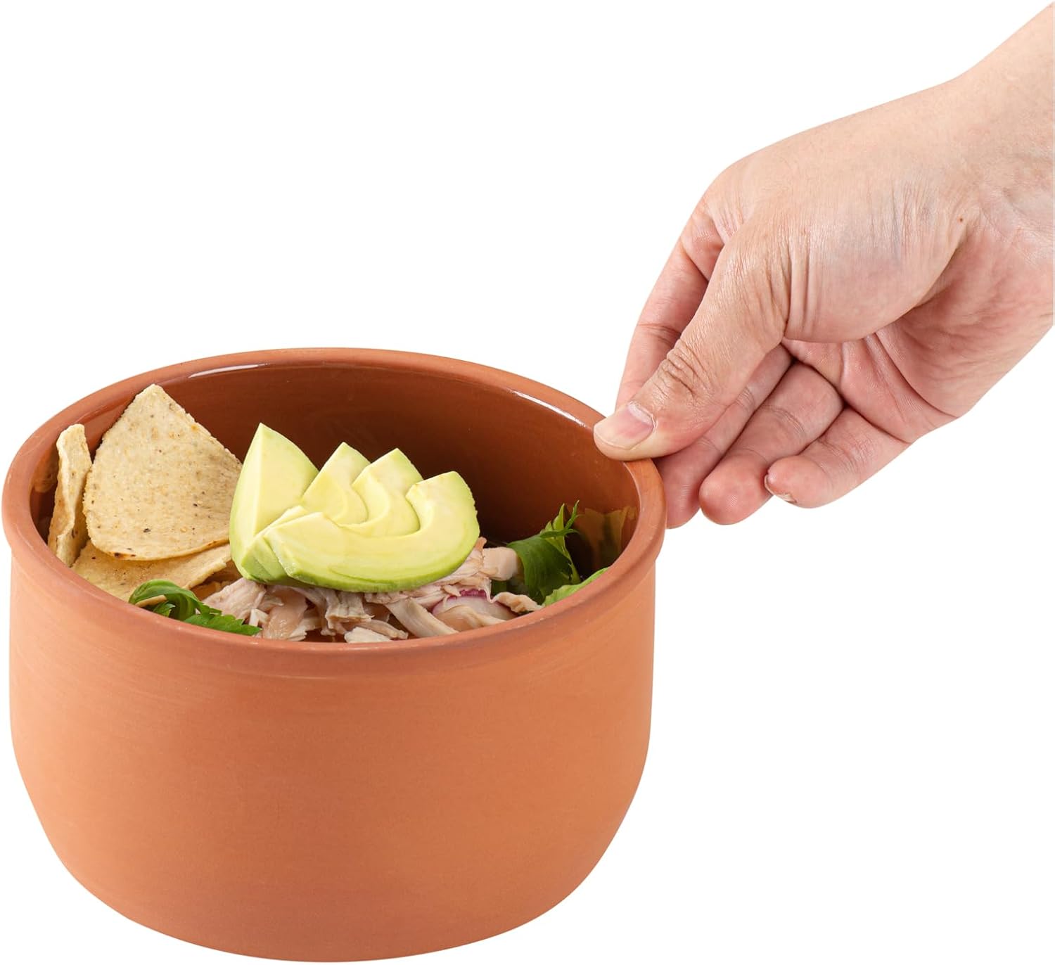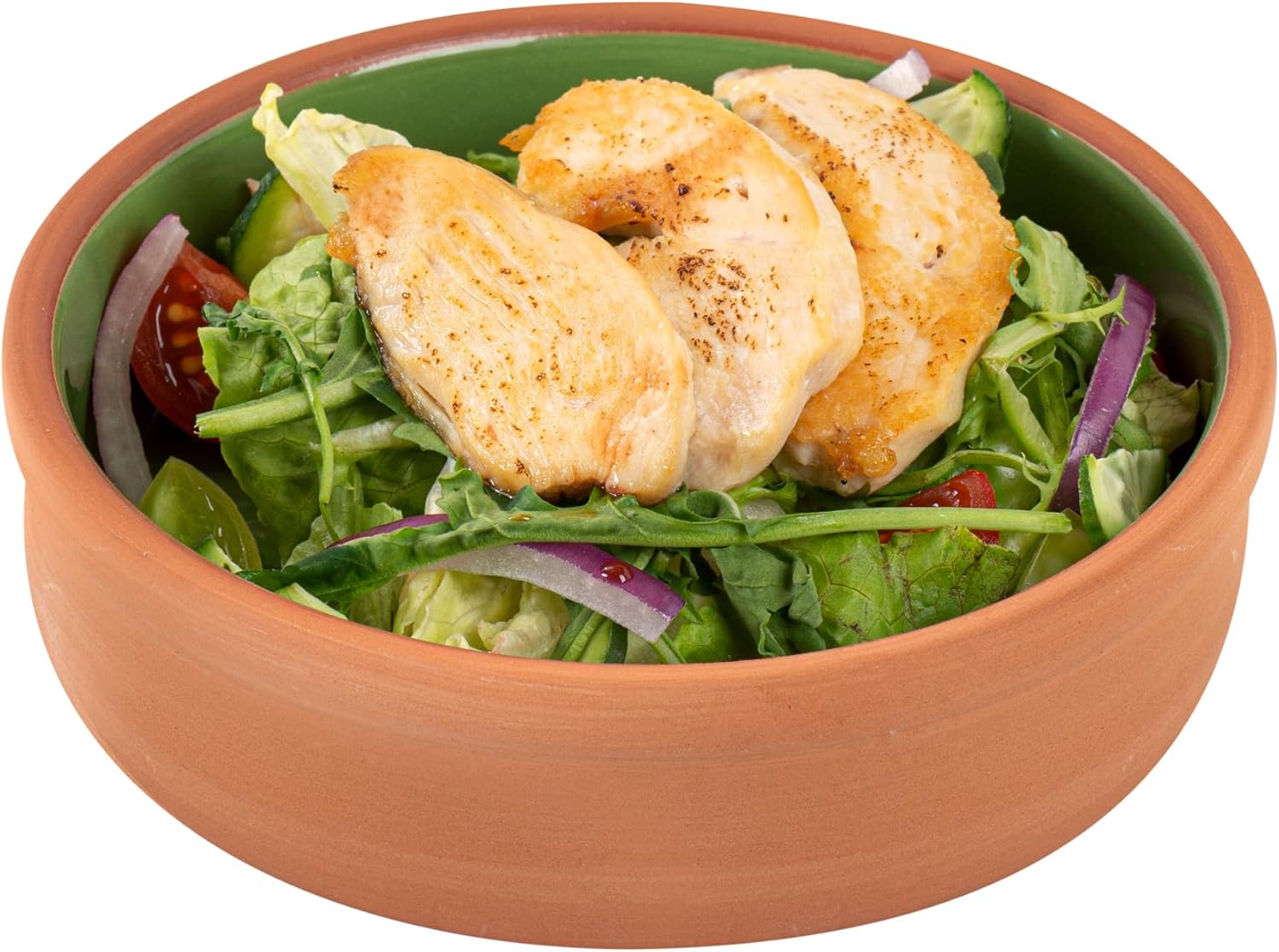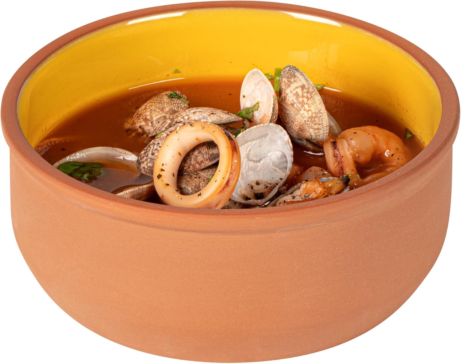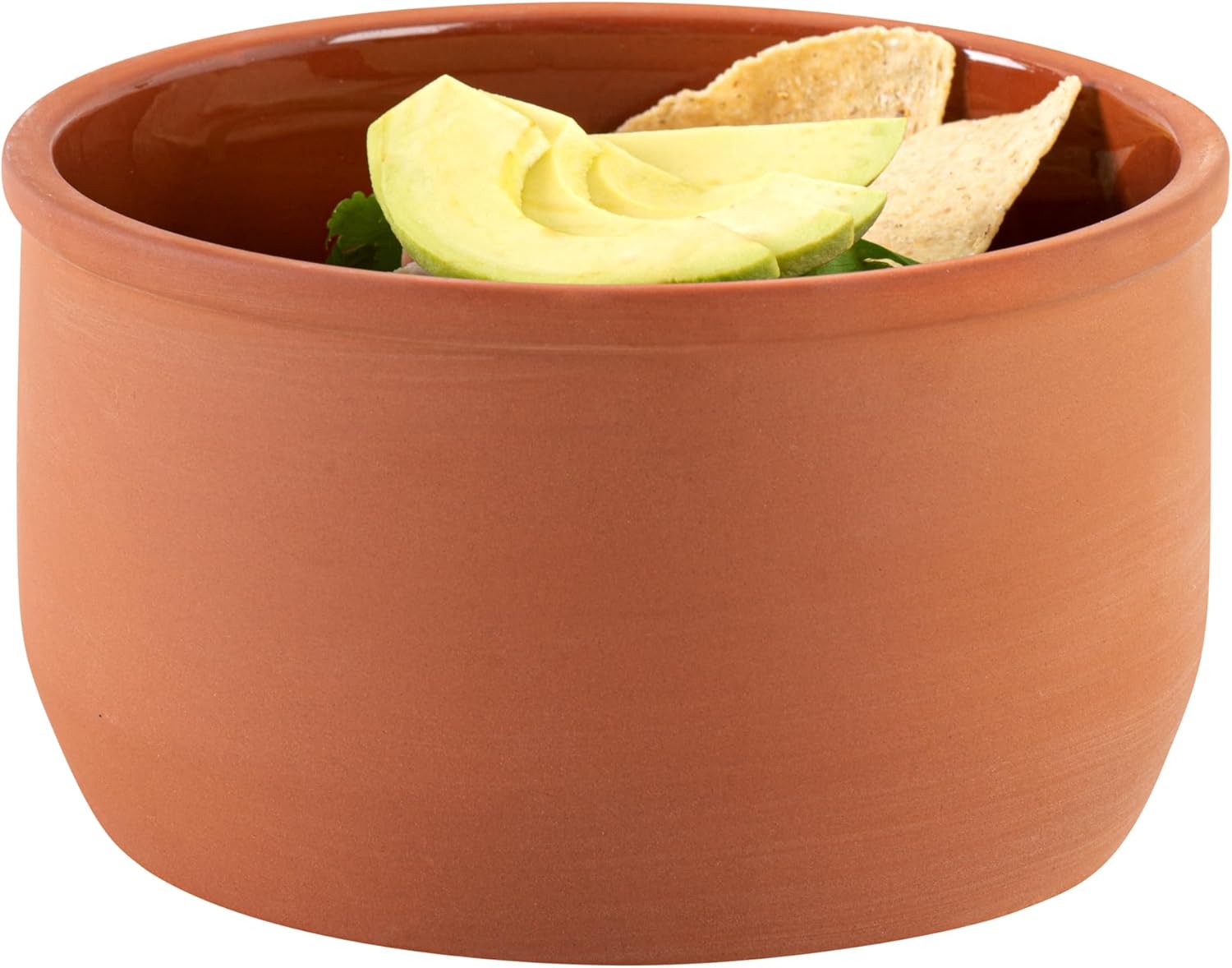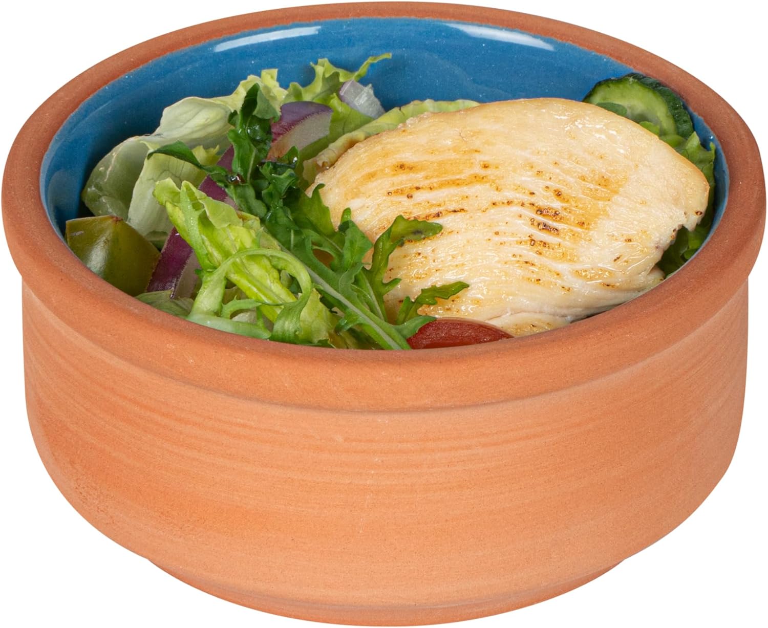 Introduce a touch of rustic elegance to your culinary creations with our Terra Tek 34-ounce Terracotta Cazuela Bowls. These cazuela bowls, made from durable terracotta, ensure longevity and reliability in even the busiest of kitchens. With a unique brown glazed interior, these greaseproof glazed bowls not only provide a beautiful contrast to your food but also ensure easy clean-up. These cooking bowls are oven-ready, making them the perfect companion for your oven-baked recipes. Plus, these microwave cooking bowls can be used to reheat your meals without compromising the flavor or texture. For those who love to prep in advance, these cazuela bowls can be securely stored in the freezer, making them a versatile addition to any gourmet kitchen. With a capacity of 34 ounces, these reusable terracotta bowls are perfect for serving main courses or family-sized salads. Measuring 6.3 inches in diameter by 3.5 inches in height, these terracotta cazuelas are just the right size for your serving needs. Sold in a 2 count box.