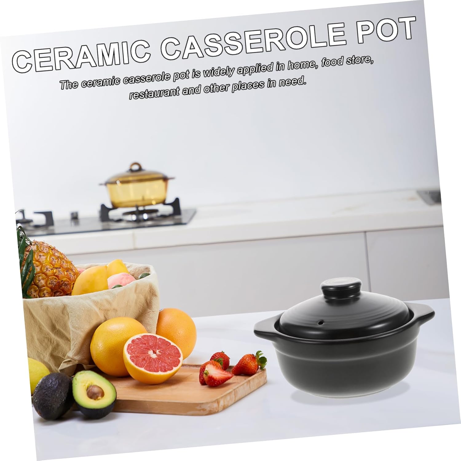 Package List 1 x Ceramic Cooking Pot with Lid Characteristics -Size: 22.00X18.50X13.00cm/8.65X7.27X5.11in ceramic pots -Material:Ceramic casserole -Color:Black stew cooker ceramic stew pot -Capacity: 1.26L simmering pot - The pot has simple outlook and practical design, which is multifunctional for home to use kitchen casserole. - Suitable for garden party, food party, family gathering, friends gathering, or just daily cooking pot. - There are many uses, such as cooking noodles, soup rice, braised chicken, braised pork, and so on kitchen soup pot. - The cooking pot is a good for your family and friends who like cooking, and they will like it household stew pot. - Non-stick design and smooth surface, easy to clean and operate. The double ears can prevent you from being scalded home ceramic casserole.Goods Informationkitchen stew pot It can be placed directly on the gas stove to stew food.kitchenware The multi-functional pot is made from ceramic material with non-stick function, and it is easy to clean.ceramic casserole pot Useful kitchen cooking tool that can be used for braised chicken