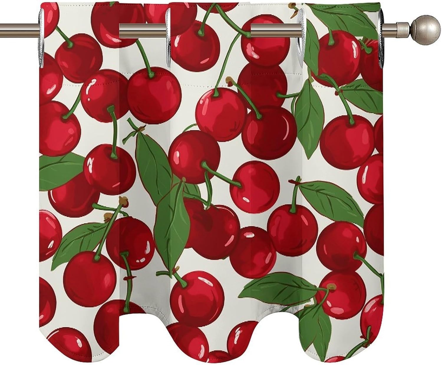 Perfect Pair Printed Curtain - Red Cherries Light Filtering Modern Window Décor Elevate your windows with our beautifully designed two-piece Red Cherries curtain set, combining a functional printed curtain with an elegant coordinating valance. Crafted for versatility, this Red CherriesCurtain is the ideal solution for adding privacy, style, and controlled light to any room. Premium Fabric & Modern Design: Crafted from premium fabric, this Red Cherries Curtain maintains a soft hand-feel and a graceful drape over time. The elegant print and smooth texture provide a sophisticated look that enhances your home's ambiance. Optimal Light Filtering & Protection: This Red Cherries modern curtain effectively filters harsh sunlight, creating a softly illuminated and comfortable atmosphere. It helps protect your furniture and flooring from UV damage while providing a good level of privacy. The fabric is resilient and designed for easy care. Versatile Application: This Red Cherries ready-to-hang Curtain is designed for broad compatibility. The curtain features standard 4.5cm grommets for smooth gliding on most curtain rods. With dimensions of 52" W x 18.1" H per panel, it's perfectly suited for various window styles. Ideal as a charming kitchen curtain or cafe curtain for bottom-up coverage, it also functions perfectly as a tier curtain. Whether you're looking for a stylish printed curtain for your living space, a functional light filtering curtain for a bedroom, or a complete look with a curtain valance, this Red Cherries set delivers both style and purpose. Set Includes: Two printed curtain panels Bring a cohesive and stylish upgrade to your home with this Red Cherries versatile curtain .