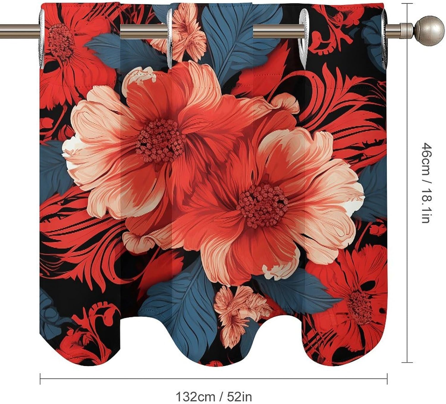 Perfect Pair Printed Curtain - Red Floral Pattern Light Filtering Modern Window Décor Elevate your windows with our beautifully designed two-piece Red Floral Pattern curtain set, combining a functional printed curtain with an elegant coordinating valance. Crafted for versatility, this Red Floral PatternCurtain is the ideal solution for adding privacy, style, and controlled light to any room. Premium Fabric & Modern Design: Crafted from premium fabric, this Red Floral Pattern Curtain maintains a soft hand-feel and a graceful drape over time. The elegant print and smooth texture provide a sophisticated look that enhances your home's ambiance. Optimal Light Filtering & Protection: This Red Floral Pattern modern curtain effectively filters harsh sunlight, creating a softly illuminated and comfortable atmosphere. It helps protect your furniture and flooring from UV damage while providing a good level of privacy. The fabric is resilient and designed for easy care. Versatile Application: This Red Floral Pattern ready-to-hang Curtain is designed for broad compatibility. The curtain features standard 4.5cm grommets for smooth gliding on most curtain rods. With dimensions of 52" W x 18.1" H per panel, it's perfectly suited for various window styles. Ideal as a charming kitchen curtain or cafe curtain for bottom-up coverage, it also functions perfectly as a tier curtain. Whether you're looking for a stylish printed curtain for your living space, a functional light filtering curtain for a bedroom, or a complete look with a curtain valance, this Red Floral Pattern set delivers both style and purpose. Set Includes: Two printed curtain panels Bring a cohesive and stylish upgrade to your home with this Red Floral Pattern versatile curtain .
