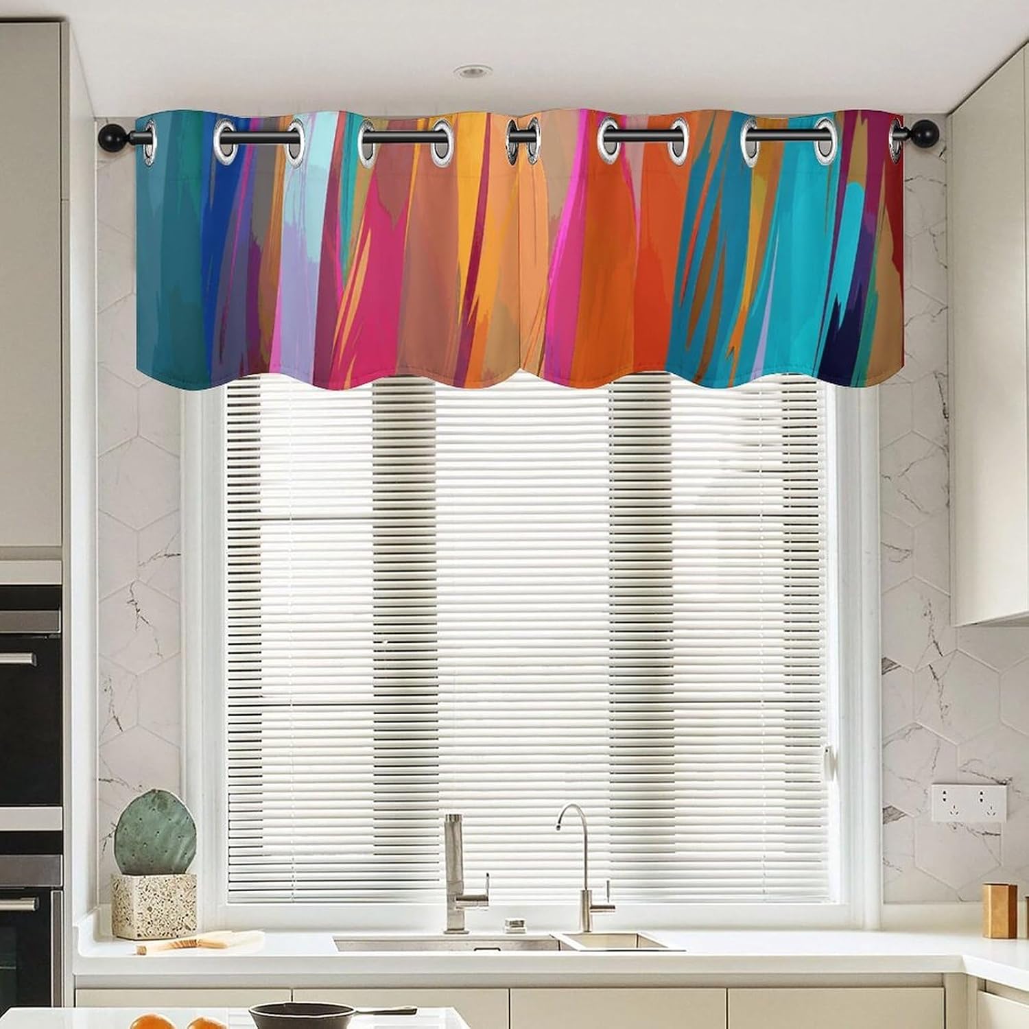 Introducing our 2-piece Rainbow Color Curtain Valance, a wonderful blend of functionality and elegance to elevate your window decor. Measuring 52 x 18.1 inches per piece, this Rainbow Color curtain set fits most windows, making it a versatile choice for any room. Crafted from premium curtain fabric, it combines soft touch with long-lasting durability, bringing comfort and practicality to your space. This Rainbow Color modern curtain features an elegant appearance and smooth texture, adding sophistication to your windows. As a light filtering curtain, it gently softens sunlight while providing moderate privacy, creating a warm glow—ideal for spaces wanting natural light without harsh glare. It also boasts impressive light-blocking performance, insulating your room from heat, protecting furniture and floors from UV damage, and creating a comfortable environment for better sleep. Designed for convenience, each Rainbow Color curtain has a 4.5cm curtain hole for easy installation on most rods. The washable fabric maintains its shape and softness after multiple washes, with nice drape to keep it neat. Whether you need a kitchen curtain, cafe curtain for a cozy nook, or tier curtain for layered decor, this Rainbow Color set fits well. Versatile and stylish, this Rainbow Color set works seamlessly as Valances or Curtain Valance, complementing various decor styles. It can also be used as a printed curtain to add a subtle decorative touch to your living room, bedroom, kitchen, or other spaces. Suitable for most windows, this Rainbow Color modern curtain is a practical that combines functionality with timeless style. Upgrade your window treatments with our 2-piece Rainbow Color Curtain Valance set—where quality, style, and functionality meet.