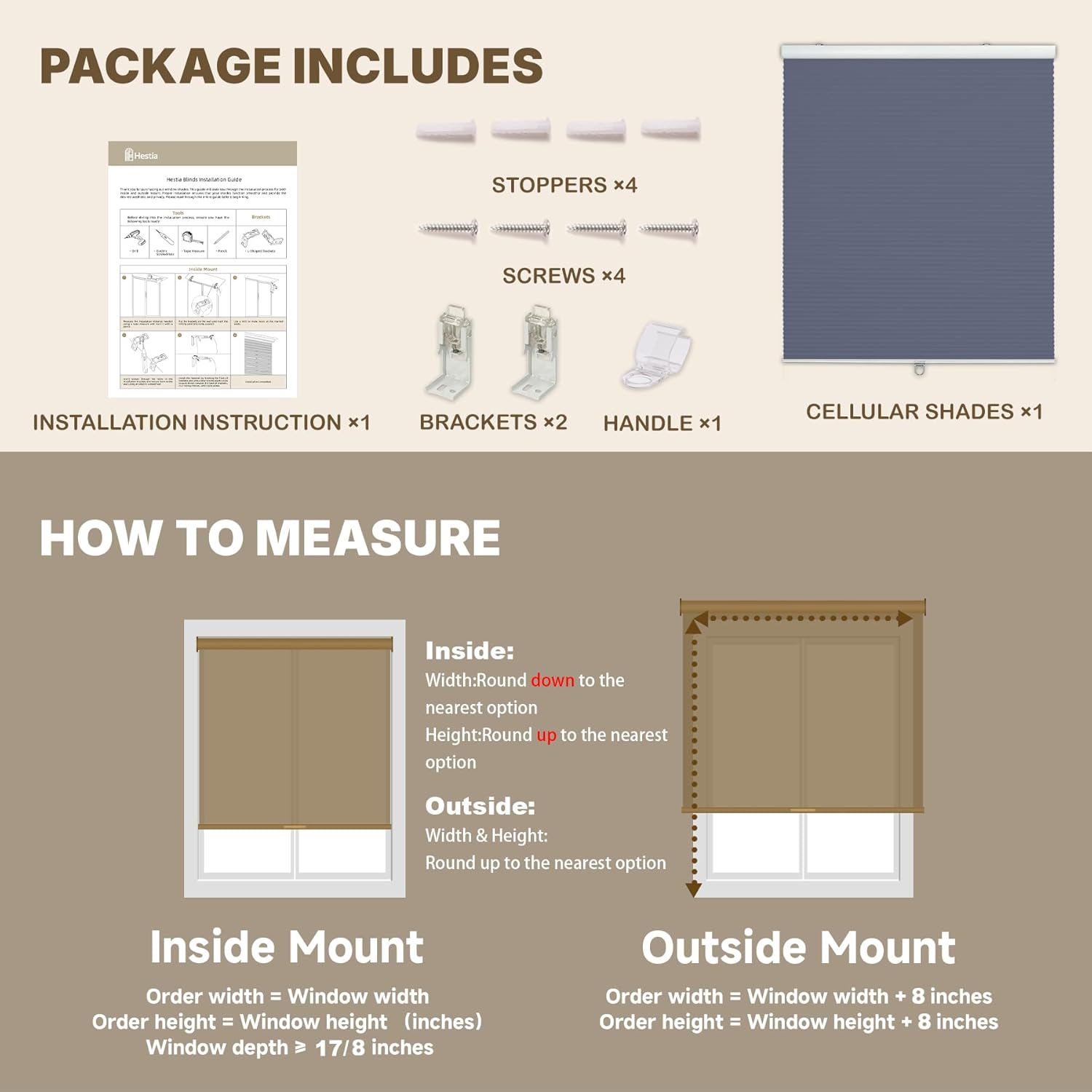 | Mounting Type | Inside Mount, Outside Mount |