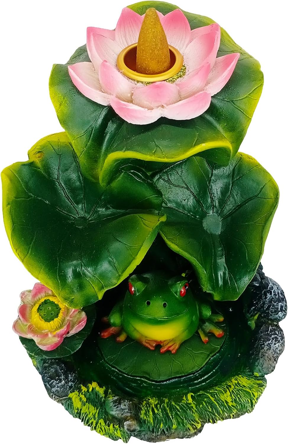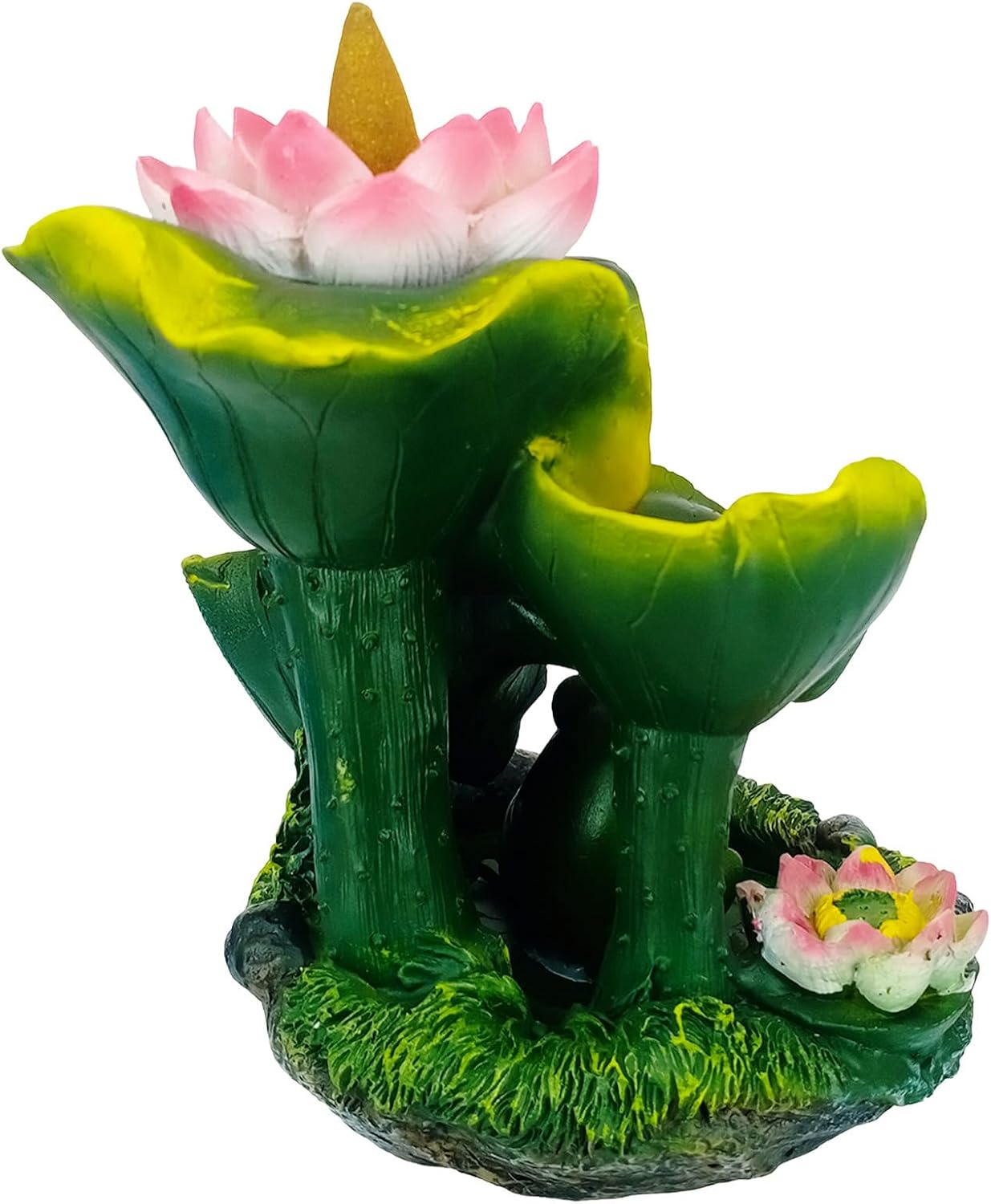 Bring the tranquility of nature into your home with the Fantasy Gifts Frog Under Lily Pads and Flower Backflow Incense Burner. This beautifully detailed resin burner showcases a peaceful frog resting beneath lush lily pads, with flowing downward like mist over a pond. Designed for backflow incense cones, it creates a calming waterfall effect ideal for meditation, yoga, aromatherapy, or enhancing the ambiance of any room. Its durable craftsmanship and soothing forest-pond theme make it both a functional incense holder and a charming decorative piece. A perfect gift for nature lovers, spiritual décor collectors, and anyone seeking peaceful, natural vibes in their space.