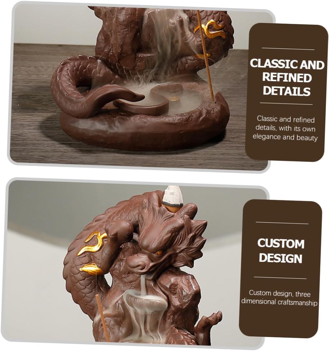 Package Include 1 x Backflow Incense Burner Characteristics -Material: Purple Sands -Product Info:incense burner -Color: Brown -Size: About 18.50X14.00X12.00cm/7.27X5.50X4.72in - Wash the main body of the incense burner with water, and the stains on the incense burner will be easily removed Creative Dragon Incense Burner. - Delicate details, fine texture, clear grain, craftsmanship, full of simple beauty Purple Sand Censer. - Excellent materials, unique dragon shape, our delicate censer adorn is very and very decorative. - Can be widely used in living room, bedroom, study, office, tea, meditation room, yoga room, hotel, etc Dragon Censer Decor. - Made of premium purple sands material with and good workmanship.Goods InformationIncense Holder Home Adornment This item is manufactured with for and use.Creative Dragon Incense Burner Perfect decoration for home, office, dorm, etc.Incense Stick Holder This dragon ceramic backflow incense burner With product appearance, can be used as a good to friends.Incense Holder It was made by a professional craftsman with special technique to make them more unique and classic