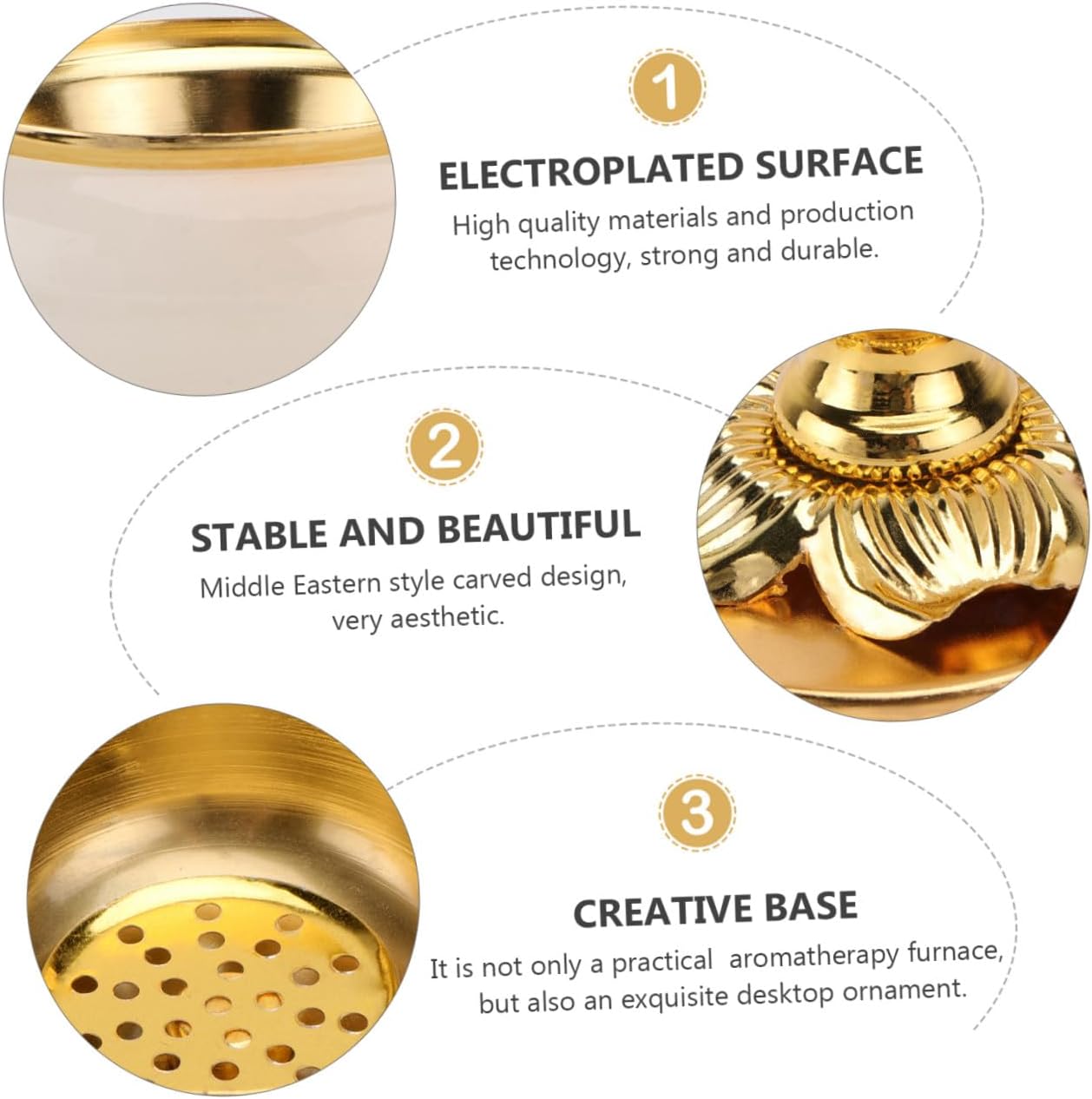 Package Include 1 x incense furnace Features - Material: Metal, Stone - Color: Golden -Product Info:Aromatherapy furnace - Perfect for bedroom, study, office, sauna room, etc aromatherapy ornament home decor. - It is not only a practical aromatherapy furnace, but also an desktop ornament Aromatherapy Furnace. - Simple in structure, very simple to operate essences burner. - The aromatherapy furnace is made of material, which is and practical for the use. - Compact size, without taking up too much space.Goods Informationaromatherapy room ornament It is suitable for many scenes, such as bedroom, living room, dining room, study, office, etc.essences burner It's made with excellent workmanship, looking and awesome.aromatherapy ornamental decor This is a burner, selected , sturdy and portable