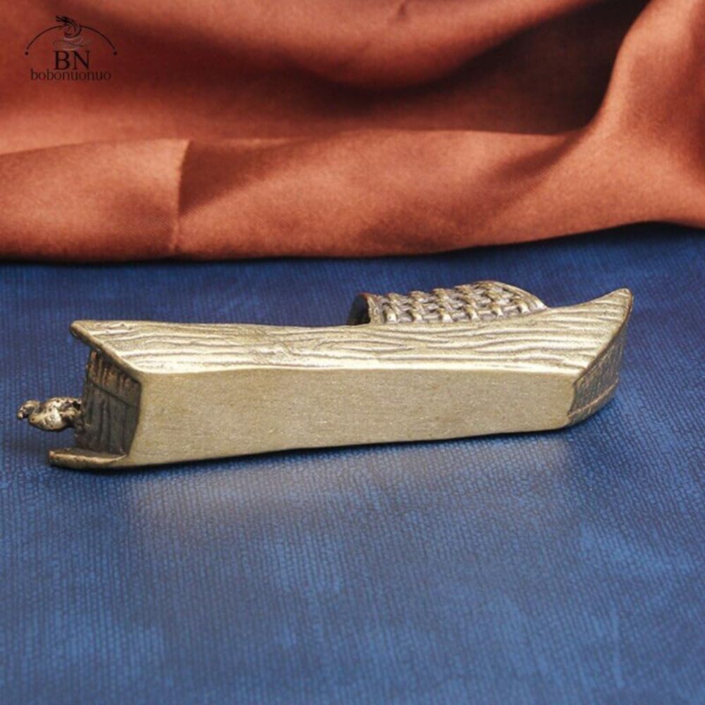 3.8" Antique Bronze Fishing Boat Zen Ornaments Incense Holder Tea Ceremony Decor size:9.65*2.8cm / 3.8*1.1inch