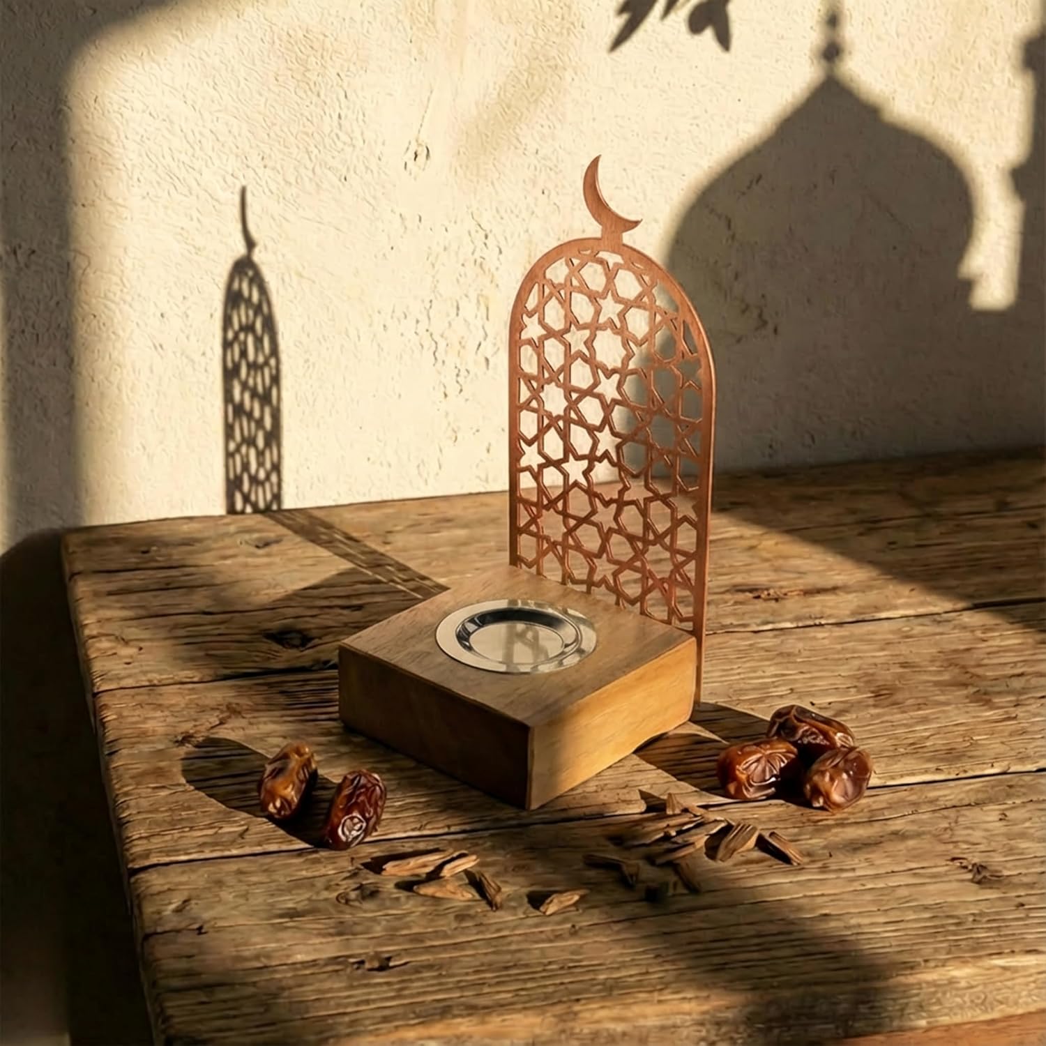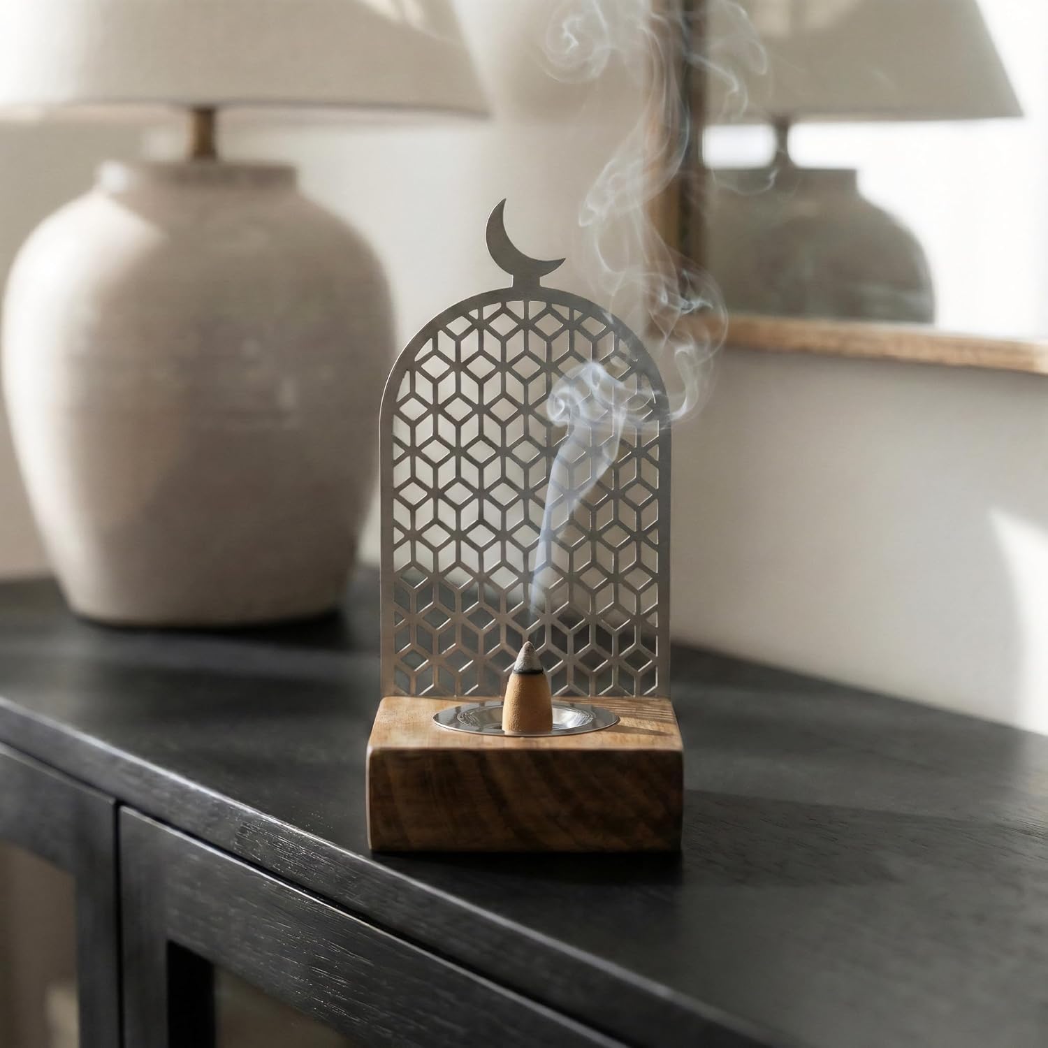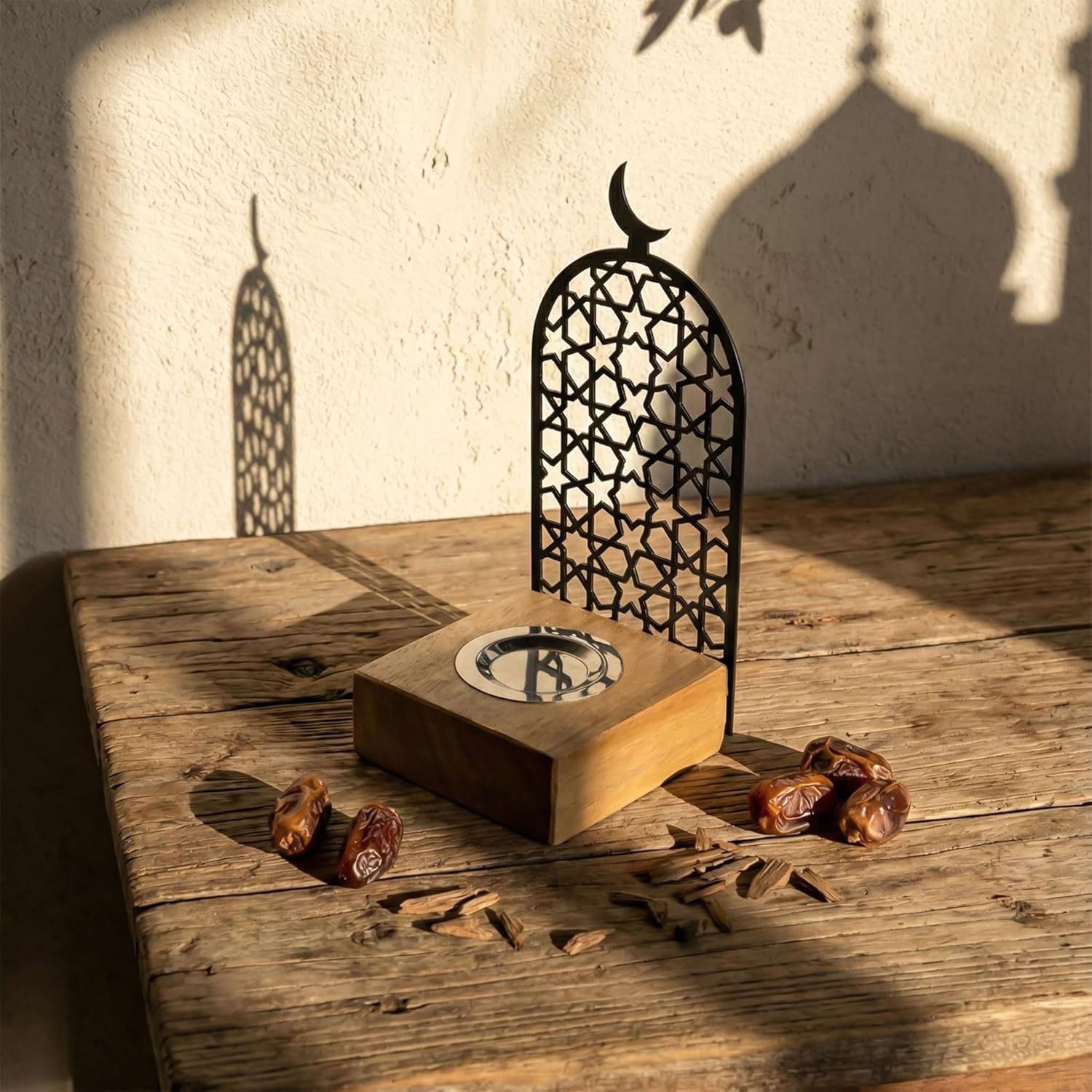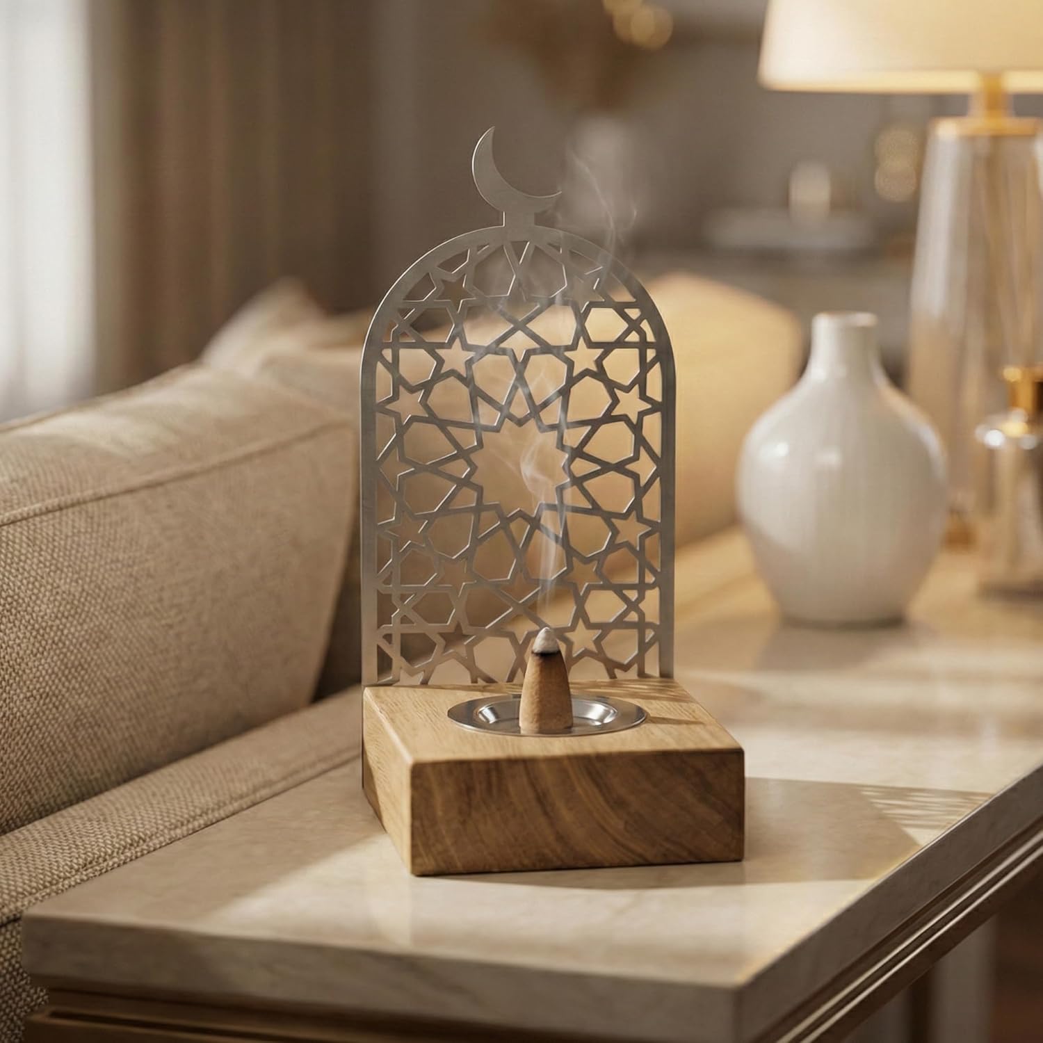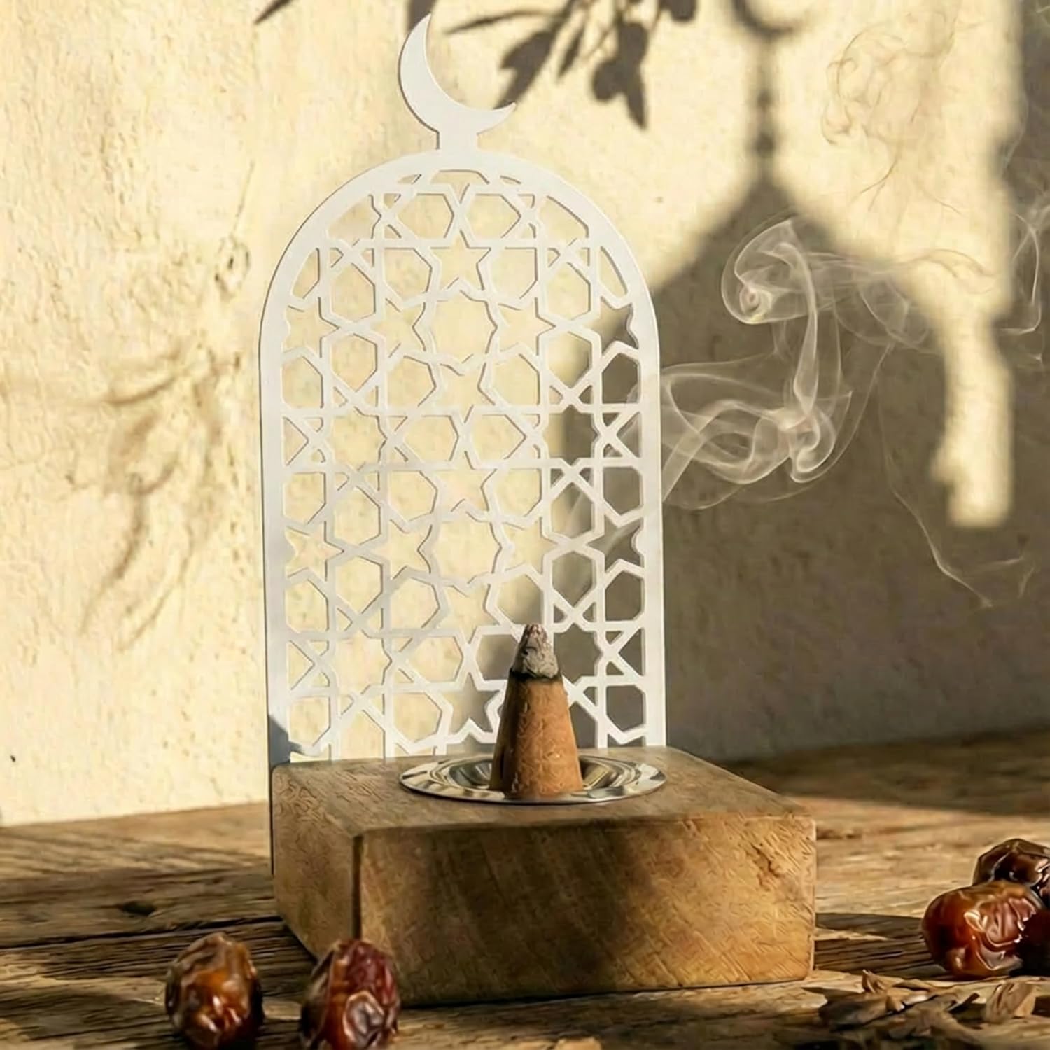 Bring Peace and Elegance to Your Home with the Modern Islamic Mabkhara Experience the perfect blend of tradition and modern design. Our Metal and Wood Incense Burner is designed to be more than just a holder—it’s a piece of spiritual art. Featuring a sturdy wooden base and a stunning laser-cut metal frame, it captures the essence of Islamic architecture through its geometric star patterns and crescent moon finial. Designed for Safety and Style The burner includes a dedicated metal tray to catch ash and withstand heat, ensuring your wooden base remains pristine. As the incense smoke rises through the intricate metal cutouts, it creates a mesmerizing visual effect that transforms any room into a sanctuary of calm. Perfect for Every Occasion Whether you are preparing your home for Ramadan, hosting an Eid celebration, or simply looking for a unique Boho-Islamic decor piece, this burner is the perfect fit. Made in Türkiye