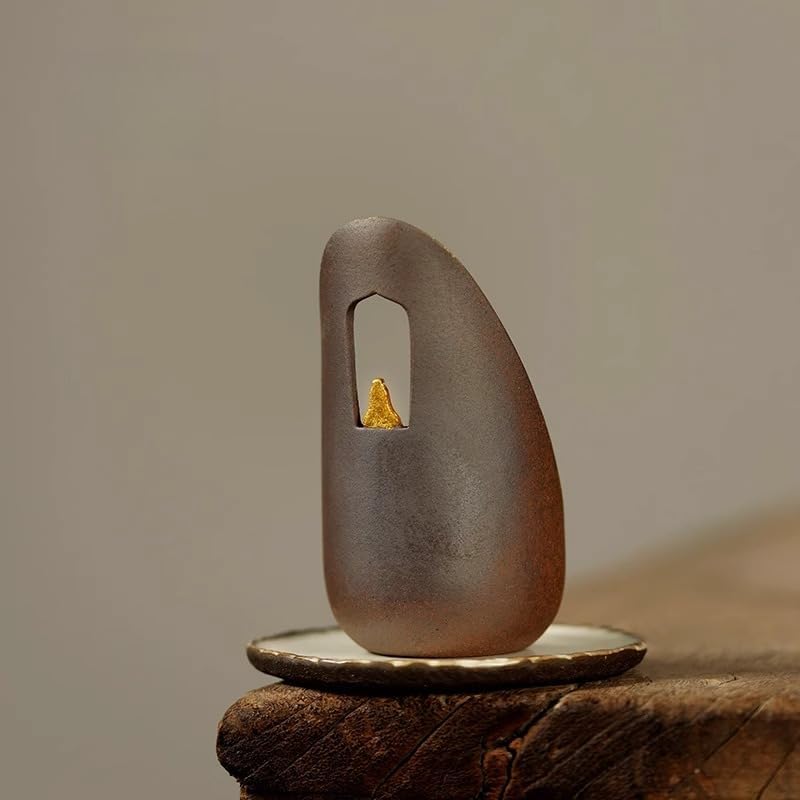 Embrace the ancient wisdom of Dunhuang grotto art with this handcrafted Wuxiang ("Formless") incense holder. Meticulously shaped from traditional old rock clay, this piece embodies the rustic elegance of Chinese tea ceremony culture while honoring the spiritual legacy of Silk Road Buddhism. The holder’s intentional asymmetrical form and naturally textured surface reflect the Wabi-Sabi philosophy of finding beauty in imperfection. Measuring 4.17 inches tall with a 3.54 inch weighted base, it provides exceptional stability during use. The precision 2.5mm opening is specifically designed for high-quality thin incense sticks like sandalwood and agarwood, ensuring secure placement and complete combustion. Crafted for contemplative practice, this piece develops a deeper character over time as the porous clay absorbs subtle aromatic notes. It serves equally well as a functional aromatherapy tool and a sculptural altar piece that evokes the mystical atmosphere of Dunhuang’s cave temples. Ideal for: Zen meditation and mindfulness practicesTraditional Chinese tea ceremony settingsSandalwood and agarwood incense enthusiastsWabi-Sabi and minimalist home decorSpiritual gift seekers Product Specifications: Material: Old Rock CeramicSize: 4.17"H x 2.36"W (10.6x6cm)Base: 3.54" Diameter (9cm)Hole Size: 2.5mm (0.1 inch)Weight: 1.2 lbs (550g) Note: Natural variations in glaze and texture are inherent to handmade ceramic artistry.