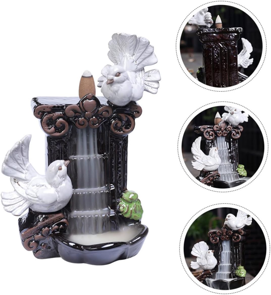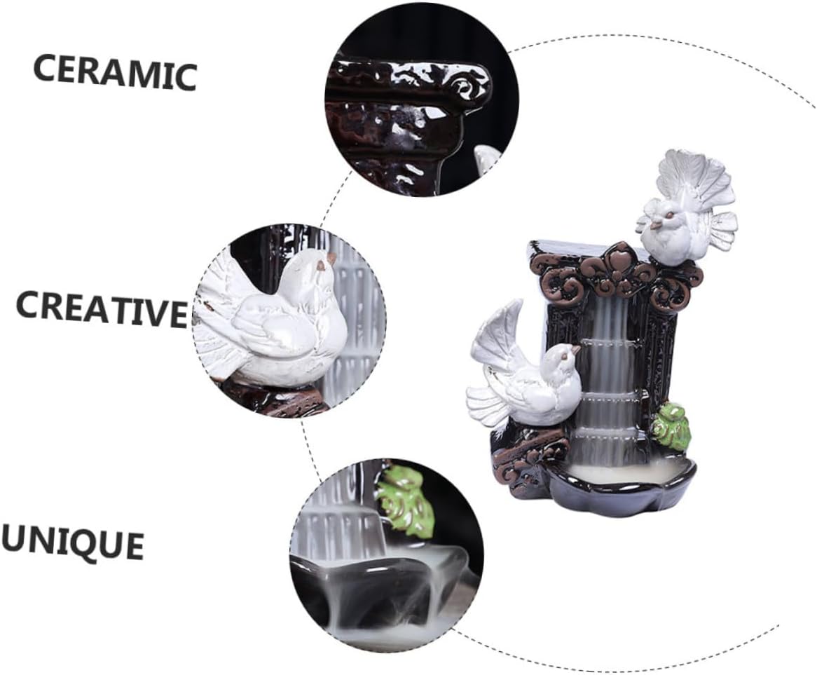 Package List 1 x incense burner 20 x aroma Features -Material: Ceramic -Size: About 18.00X13.50X9.00cm/7.07X5.31X3.54inch -Color:Multi -Product Info:Ceramic pigeon ornaments - Features the rational size, without taking up too much on your home or office desktop. - Put incense on the upper part, the will flow down like water, very decorative. Antique craftsmanship Censer Adornment. - The incense burner is not only a practical aromatherapy furnace, but also an desktop ornament home ornaments for the living room. - The aromatherapy furnace is made of good material, which is and practical for the use. - Perfect for bedroom, study, office, sauna room, etc. It will make the room full of art atmosphere porcelain decoration.Goods Descriptiondecorative censer This is an aroma burner, selected , sturdy and practical.desktop ornament It's made with excellent workmanship, looking and awesome.living room ornaments It is suitable for many scenes, such as bedroom, living room, dining room, study, office, etc