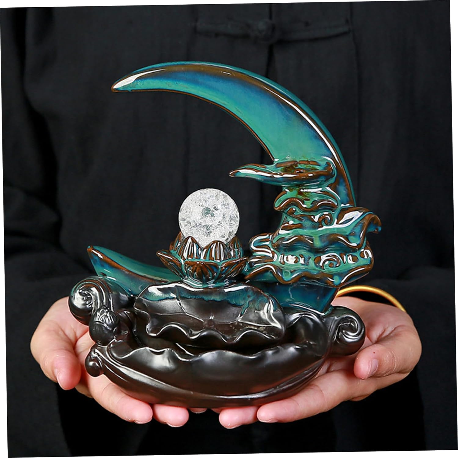 Description: Elevate your home or office decor with the Backflow Incense Burner 6.30x5.91x3.74 Inch Creative Ceramic Reusable Moon Incense Holder. Designed with a unique moon shape and crafted from ceramic, this incense burner not only adds elegance to your space but also offers a sustainable and reusable option for long-term use. The mesmerizing backflow effect creates a captivating waterfall-like visual as the incense ash cascades downward, making it perfect for relaxation or meditation sessions. Its versatile design makes it an ideal gift for any occasion, combining functionality with artistic appeal. Whether you're enhancing your home decor or searching for a thoughtful present, this backflow incense burner is sure to impress with its unique features and quality craftsmanship. Features:. Backflow Incense Burner. -Color: cyan. -Material: ceramic. -Size: about 16x15x9.5 cm/6.30x5.91x3.74 inch. Note:Manual measurement, please allow slight errors on size.The colors may exist slight difference due to different screens. Package Including 1 x Backflow Incense Burner